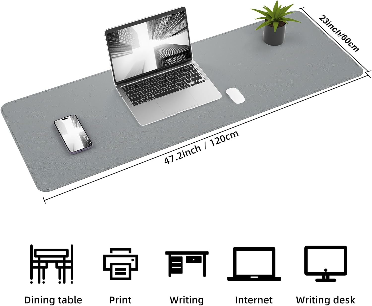 Leather Desk Protector, 47in*23.7in Large Mat with Natural Cork & PU Leather, Mouse Pad, Non-Slip Office Mat, Waterproof Writing Pad for Office and Home (Light Grey)