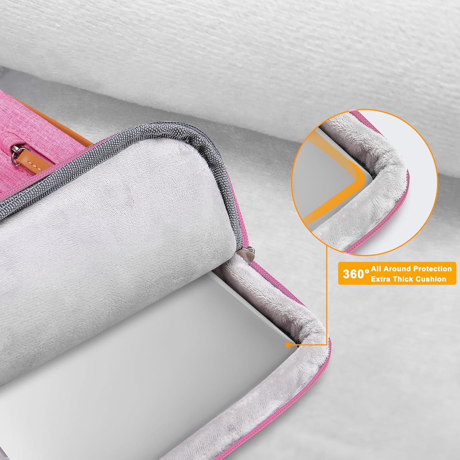 - 360 degree all around protective reinforced interior edge briefcase carrying case bag protect your laptop from any accidental dropping. Extendable handle design makes it to carry your laptop around in comfort, you can also tuck away the handle. Side opening zipper design, avoid accidental dropping of your laptop while carrying. 4 front zipper pockets provide enough space to keep mouse, earphone, pens and notepads, offering added convenience.