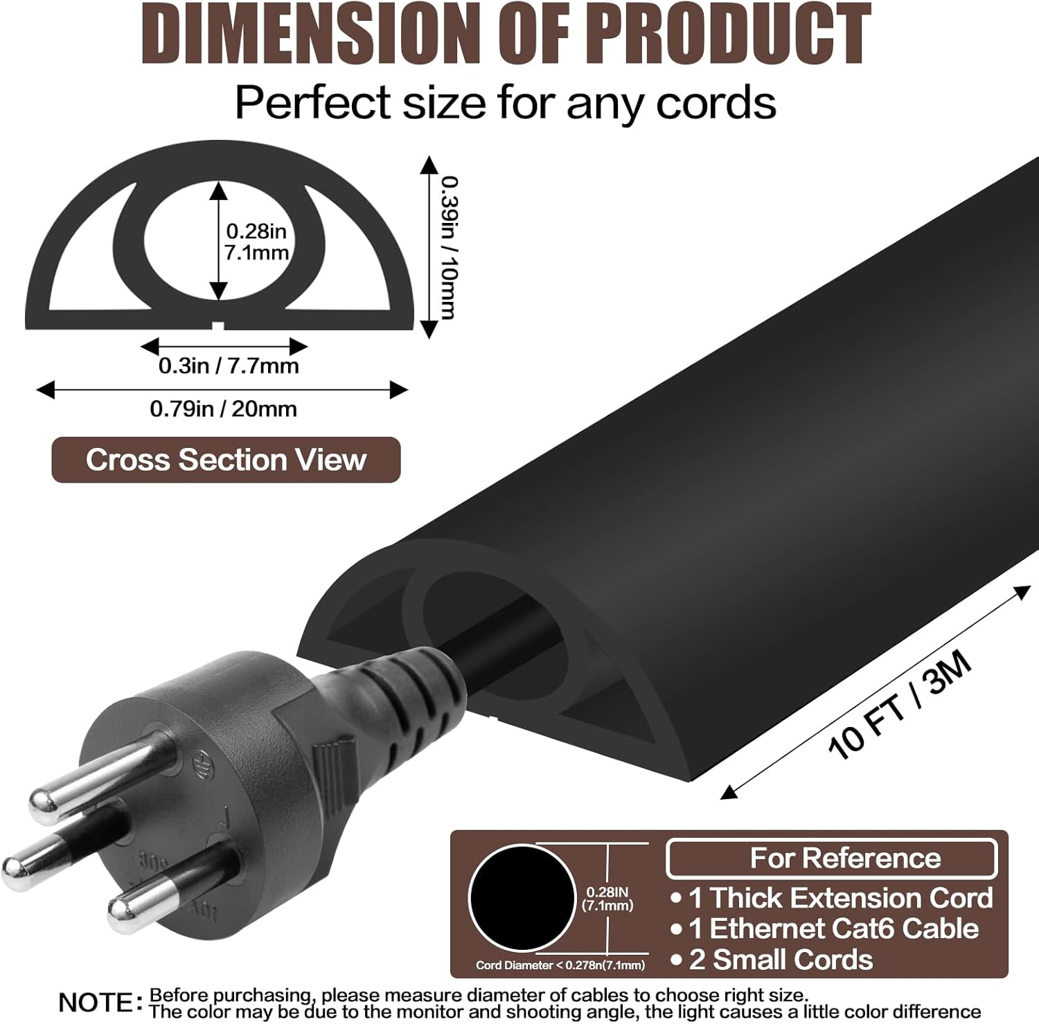 Floor Cord Cover Self Adhesive Cord Hider,10FT Cable Management, Extension Strip Protector for Wires, Prevent Cable Trips for Offices, Gyms, Exhibitions Cavity:0.3"(W) x 0.28"(H) Black