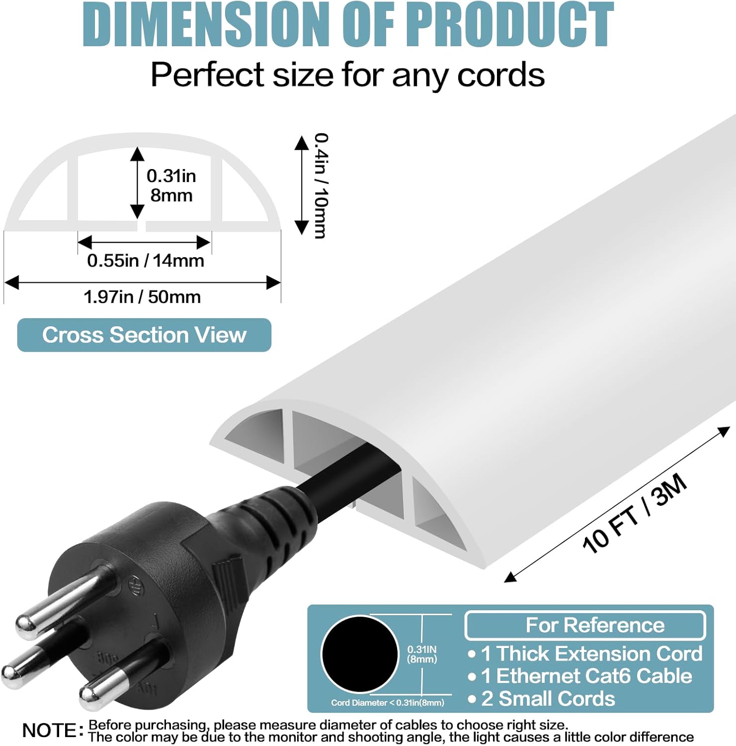 Floor Cord Cover Self Adhesive Cord Hider,10FT Cable Management, Extension Strip Protector for Wires, Prevent Cable Trips for Offices, Gyms, Exhibitions Cavity:0.47"(W) x 0.35"(H) White