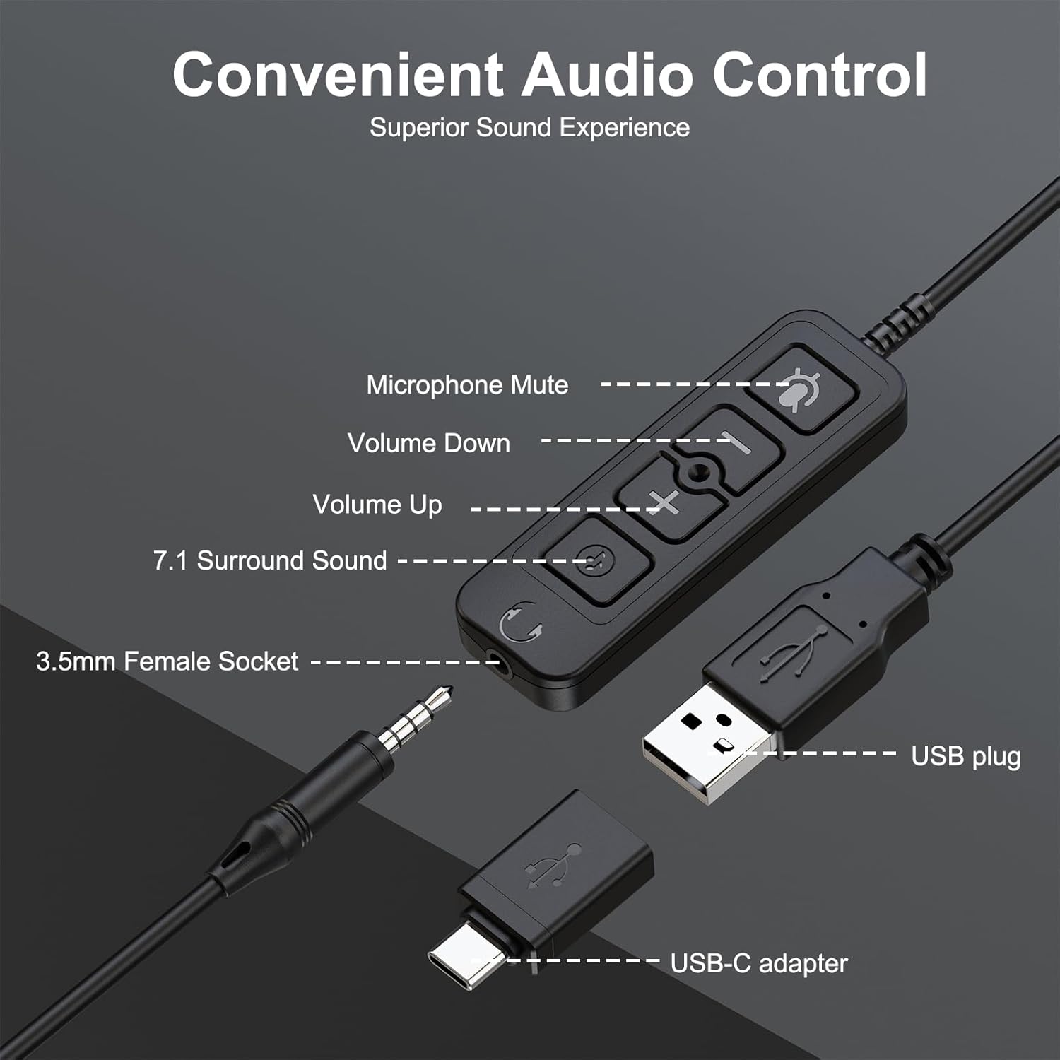 - UNLEASH IMMERSIVE AUDIO EXPERIENCE: utilizing advanced USB algorithms and powerful speaker drivers, the cutting-edge USB headset with microphone for PC allows you to effortlessly switch between 6 dynamic sound effects with just a button to enjoy audio versatility. Immerse yourself in 7.1 Surround Sound and Deep Bass whether you're on phone call, gaming, music or video conference.