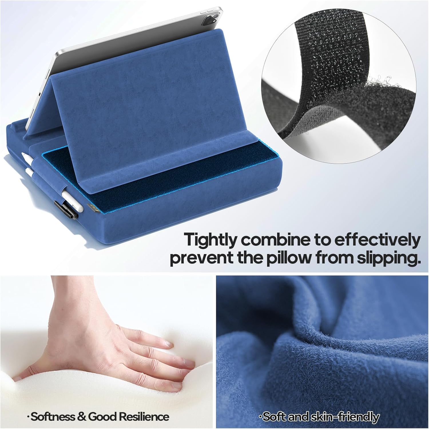 - 【Flexible Angle Adjustment】This adjustable i-Pad pillow stand for lap is innovatively designed with Velcro fastening, so the angle adjustment is more flexible. More angle adjustments of the tablet pillow holder can meet the comfort of viewing the screen while sitting, lying down or even reclining, providing the best viewing angle.