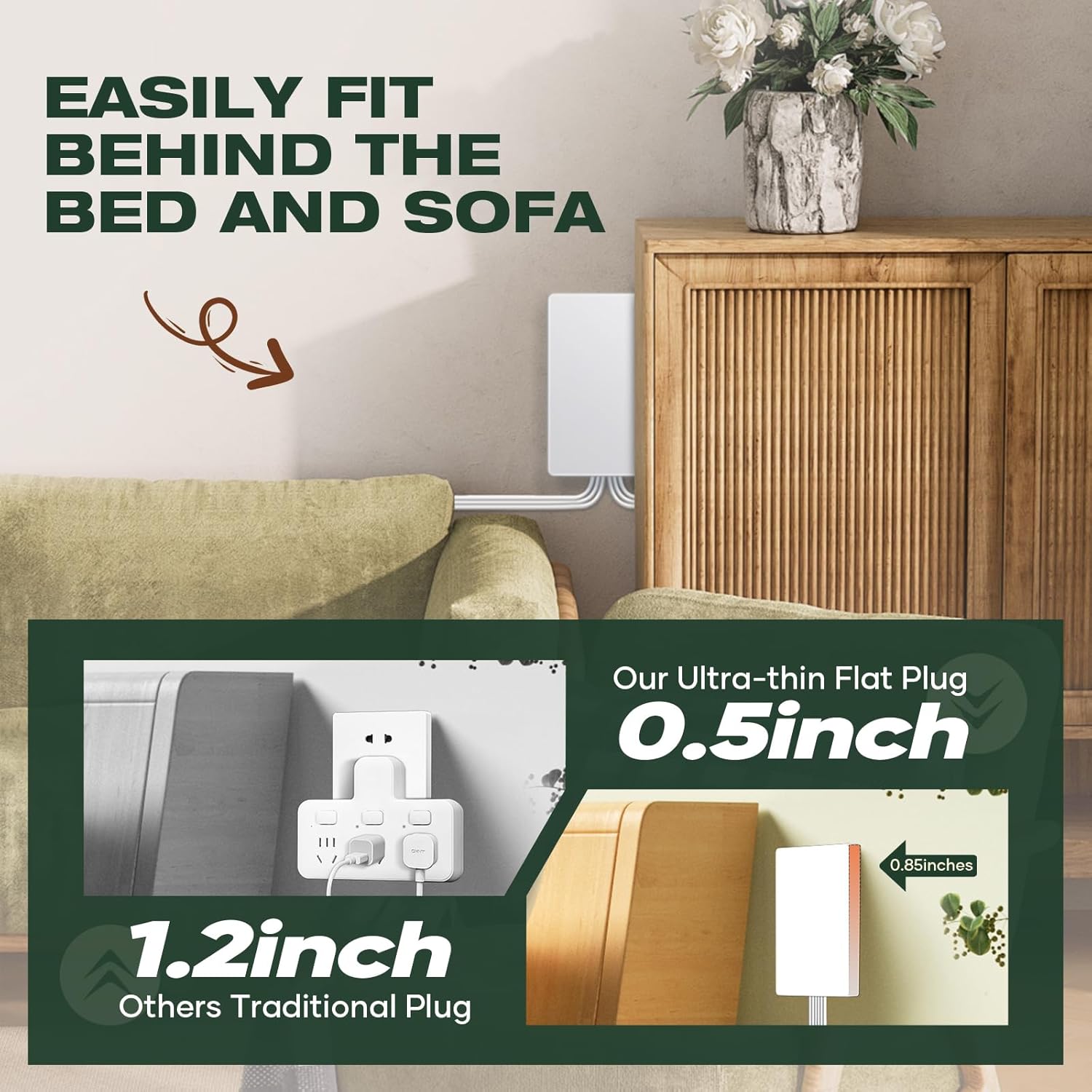 - 【ELEVATE YOUR SPACE WITH A MODERN, ORGANIZED LOOK】Upgrade your home with our outlet cover extension cord. Featuring a flexible flat extension cord design, it allows for customizable cord positioning, making it ideal for various outlet placements and ensuring a clean, clutter-free look.