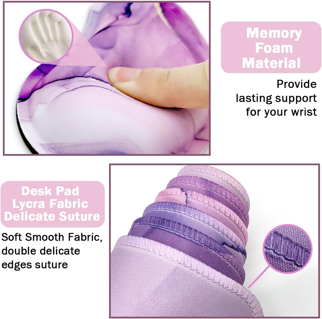 Large Mouse Pad and Keyboard Wrist Rest, Desk Pad for Keyboard and Mouse, 4-in-1 Large Gaming Mouse Pad with Wrist Support, Desk Mat for Home Office Study Game-Purple