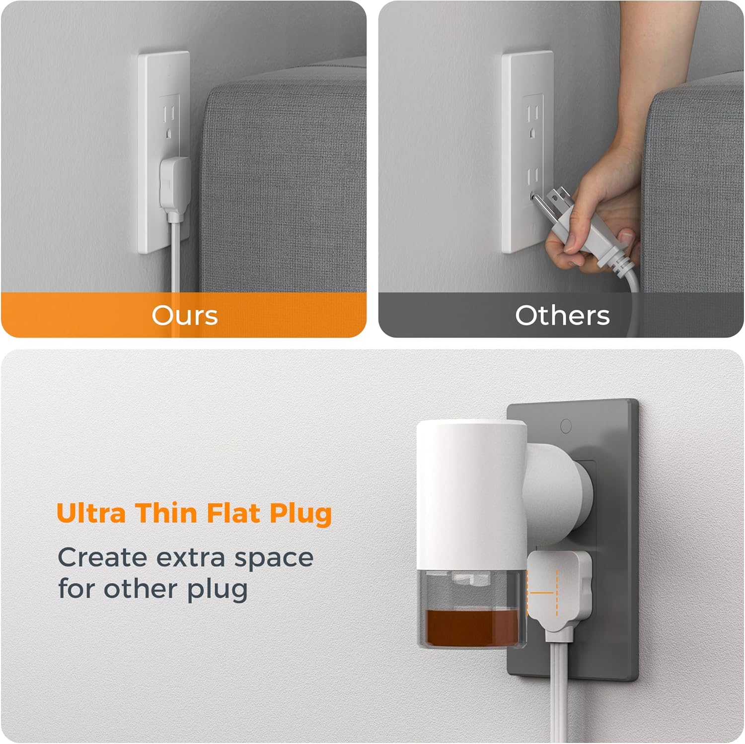 - Widely Space Outlet: 3-side design usb outlet splitter could fit 4 big plugs at the same time without blocking, makes it easier to use various household applicants in any place with limited sockets such as laptop, camera, fan and more
