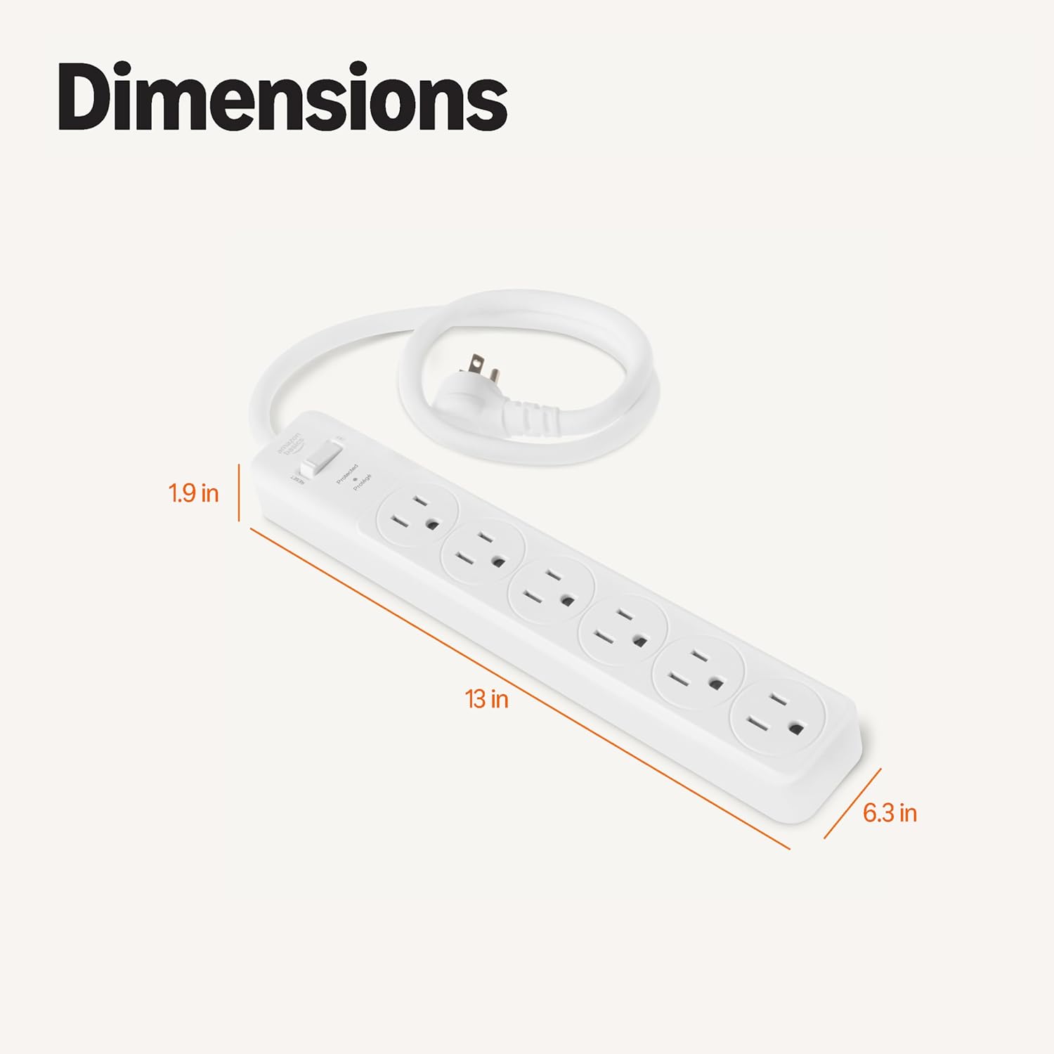 Amazon Basics Rectangle 6-Outlet, 600 Joule Surge Protector Power Strip, 2ft, Small, White, 2-Pack