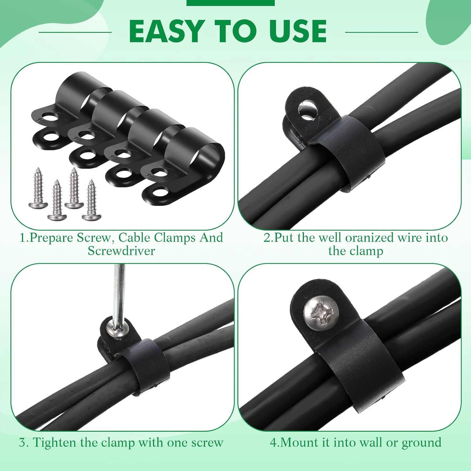 - Easy to use: put the wire into the cable clip, then tighten the clip and mount it into wall or ground with one screw, quick and convenient to use