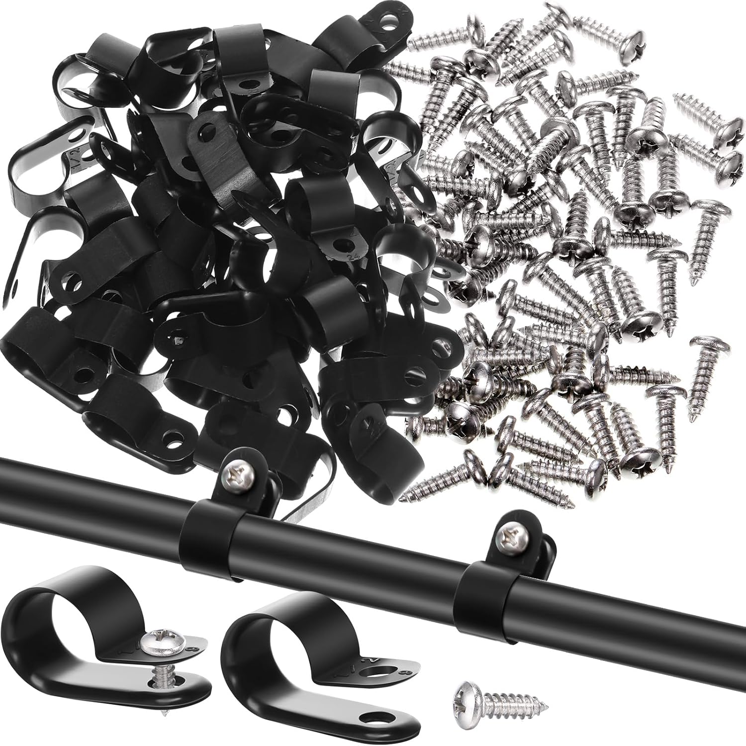 - Size: the r-type cable clip has a 1/ 2 inch closed diameter; Quantity: 50 pack r-type clamps and 50 pack matching screws, they can be applied repeatedly
