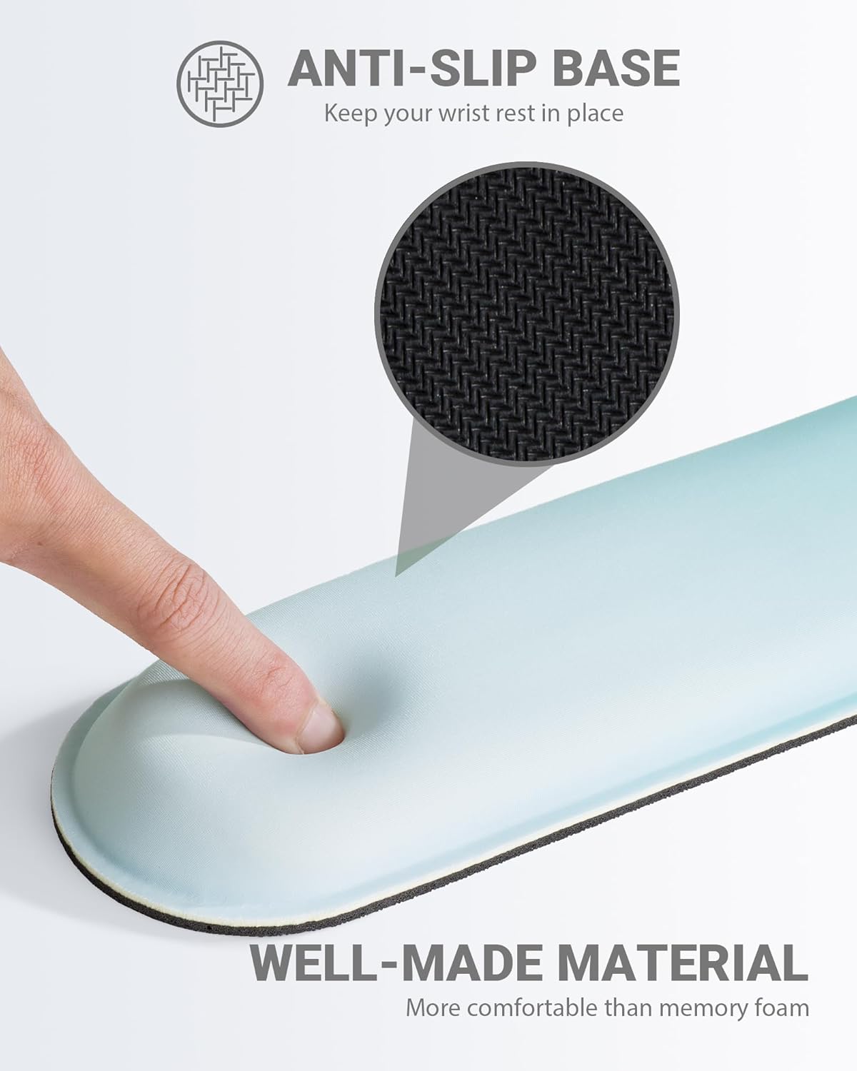 - 【Smooth Lycra Material】Mouse pad with wrist support is made of premium Lycra fabric and gel wrist rest. The smooth Lycra covering improves mouse tracking movements.The keyboard wrist rest set is made from a soft and breathable material, providing you with lightweight, comfortable and skin-friendly touch, ideal for long time use.
