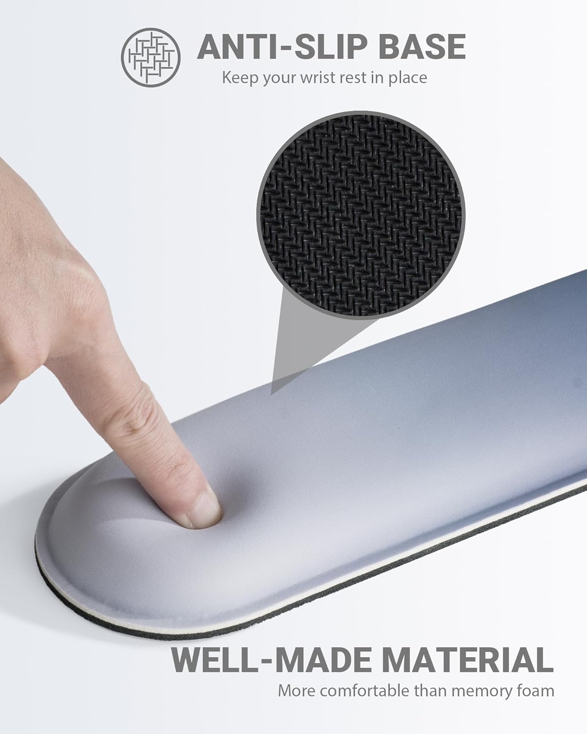 - 【Smooth Lycra Material】Mouse pad with wrist support is made of premium Lycra fabric and gel wrist rest. The smooth Lycra covering improves mouse tracking movements.The keyboard wrist rest set is made from a soft and breathable material, providing you with lightweight, comfortable and skin-friendly touch, ideal for long time use.