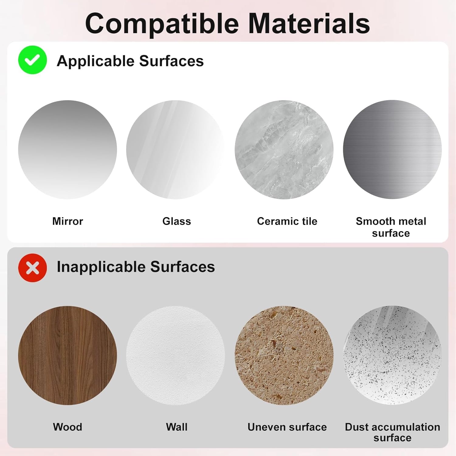 - Note: It is only suitable for completely smooth phone cases, not for silicone phone cases or other non smooth phone cases. You can attach the suction cup phone mount to a smooth surface such as a mirror or glass. Before releasing your hand, make sure the phone is firmly adheres.The adsorption time is related to the smoothness of the surface of the adsorbing object, and the effect of adsorption on mirrors and glasses is the best.The suction power of the suction cup phone mount will gradually weaken over time. Do not use for too long each time to prevent the phone from falling.
