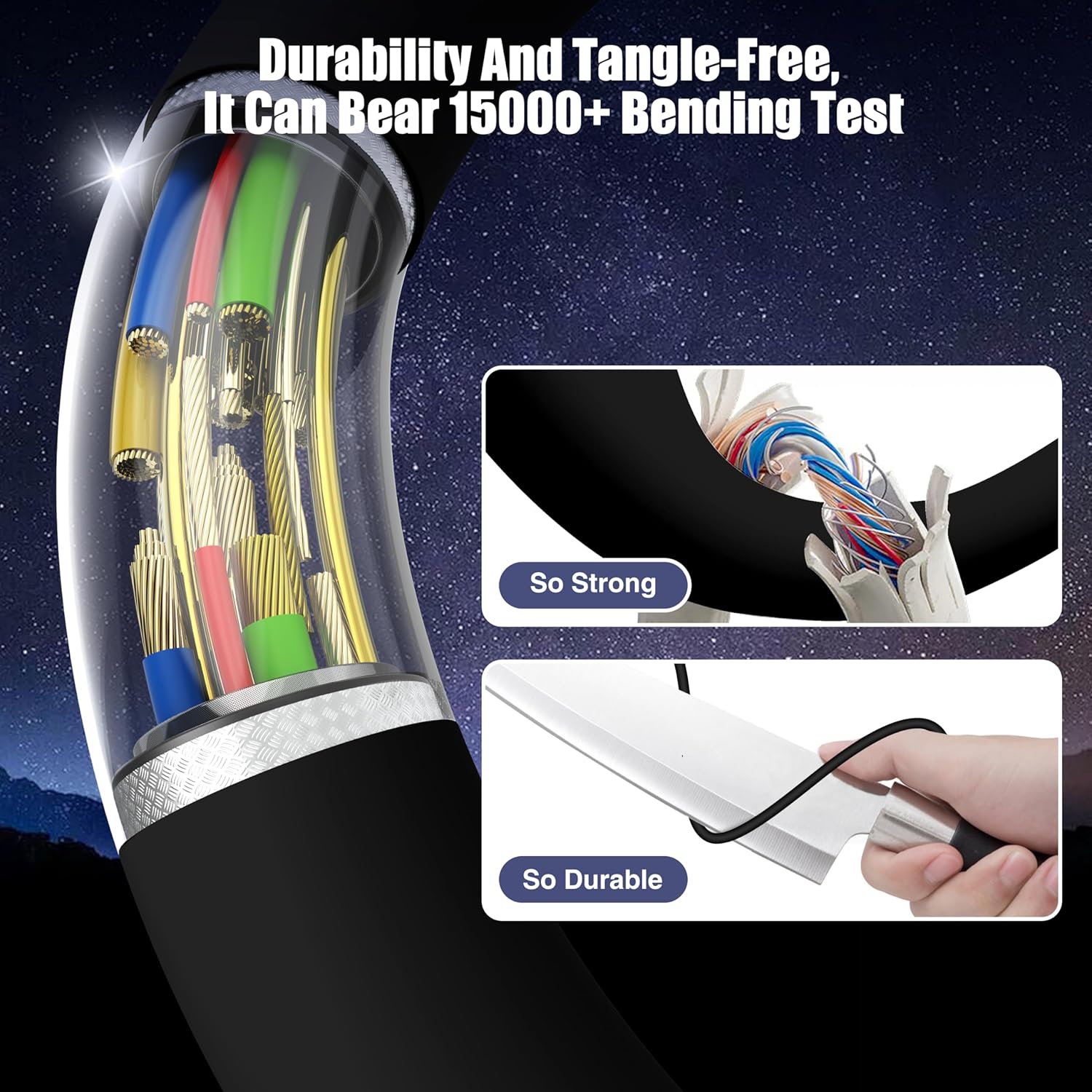 - 【Very Durable】This long usbc to usbc fast charging cable adding additional durability and tangle-free, it can bear 15000+ bending test. The type c to type c cable is strong military fiber make it flexible. The type c cable to type c fast charging has unique laser welding technology to make the connector prevent from broken.ipad charging cord fast charging cord type c usb-c to usb-c cable iphone 15 pro max accessories c to c cable usbc charger c type charger cord usb c cables iphone 15 cords.