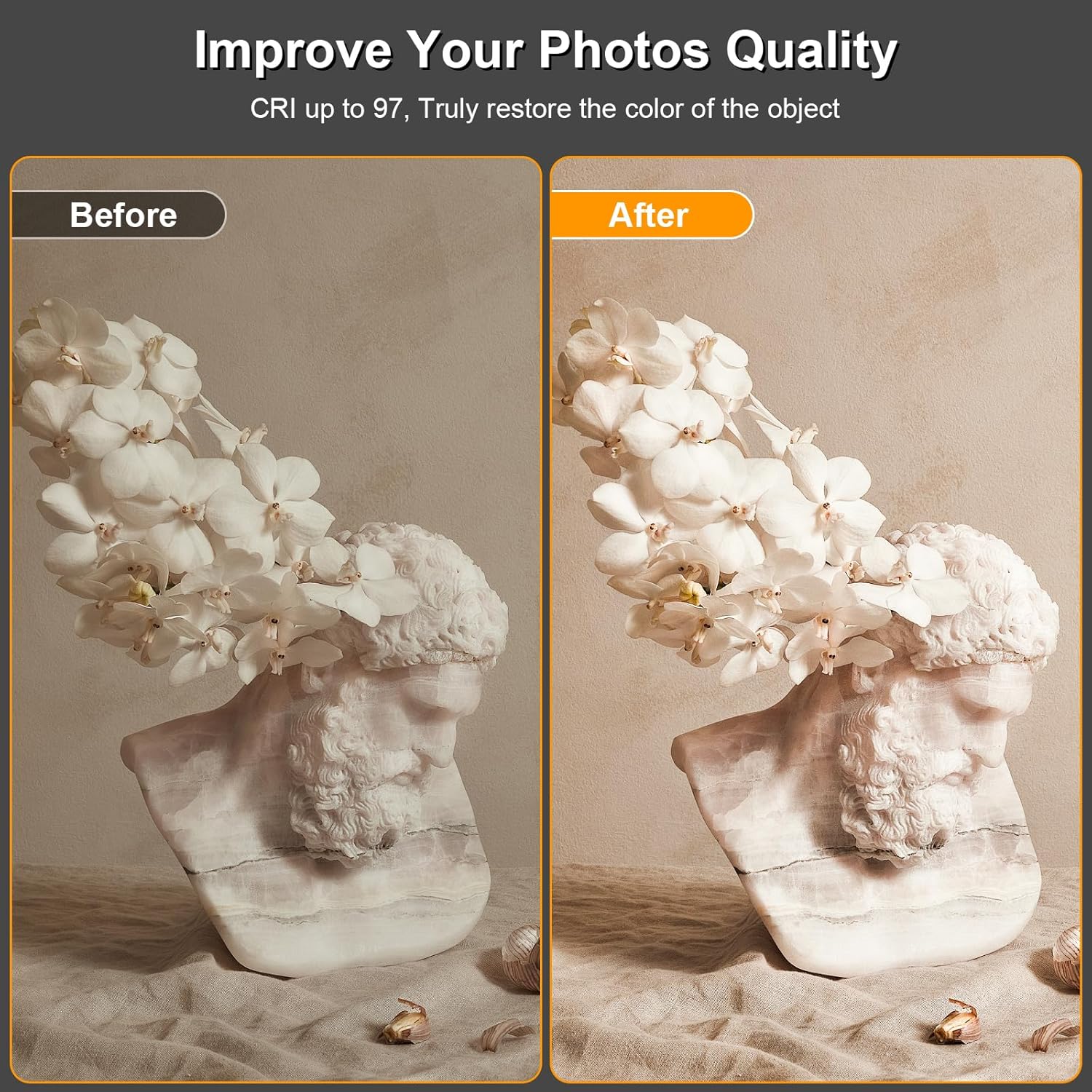 - 【7 Light Modes & 10 Brightness Levels】 :The camera light selfie light has 7 Light Modes(2500K-6500K), which are provided to meet your various usage needs, the high CRI rating of 97+ allows you to be charming in any situation, such as makeup lighting, selfies, video recording, video conference, vlog show, live streaming. Led selfie light for phone built-in 60 LED lighting beads to improve the quality of night. The fill light is softer, brighter not dazzling