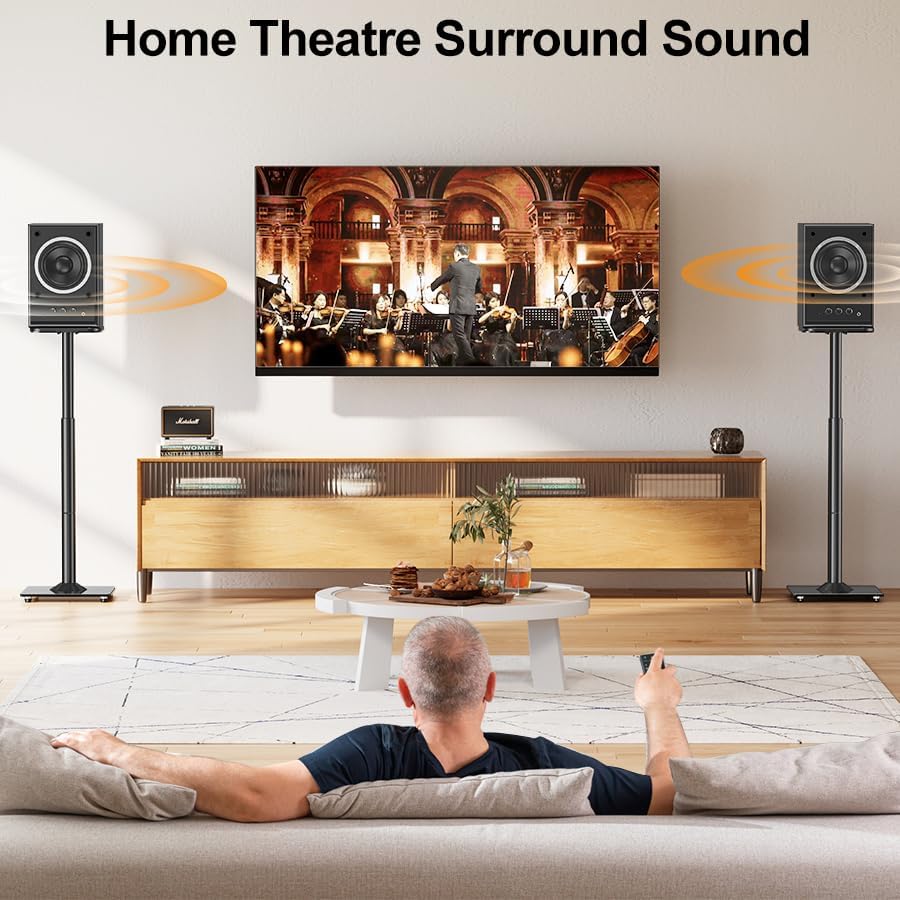 - Height Adjustment - Speaker floor standing pair can adjust height from 28" to 37.4" for ear-level listening experience. A great choice for your home theater entertainment system.