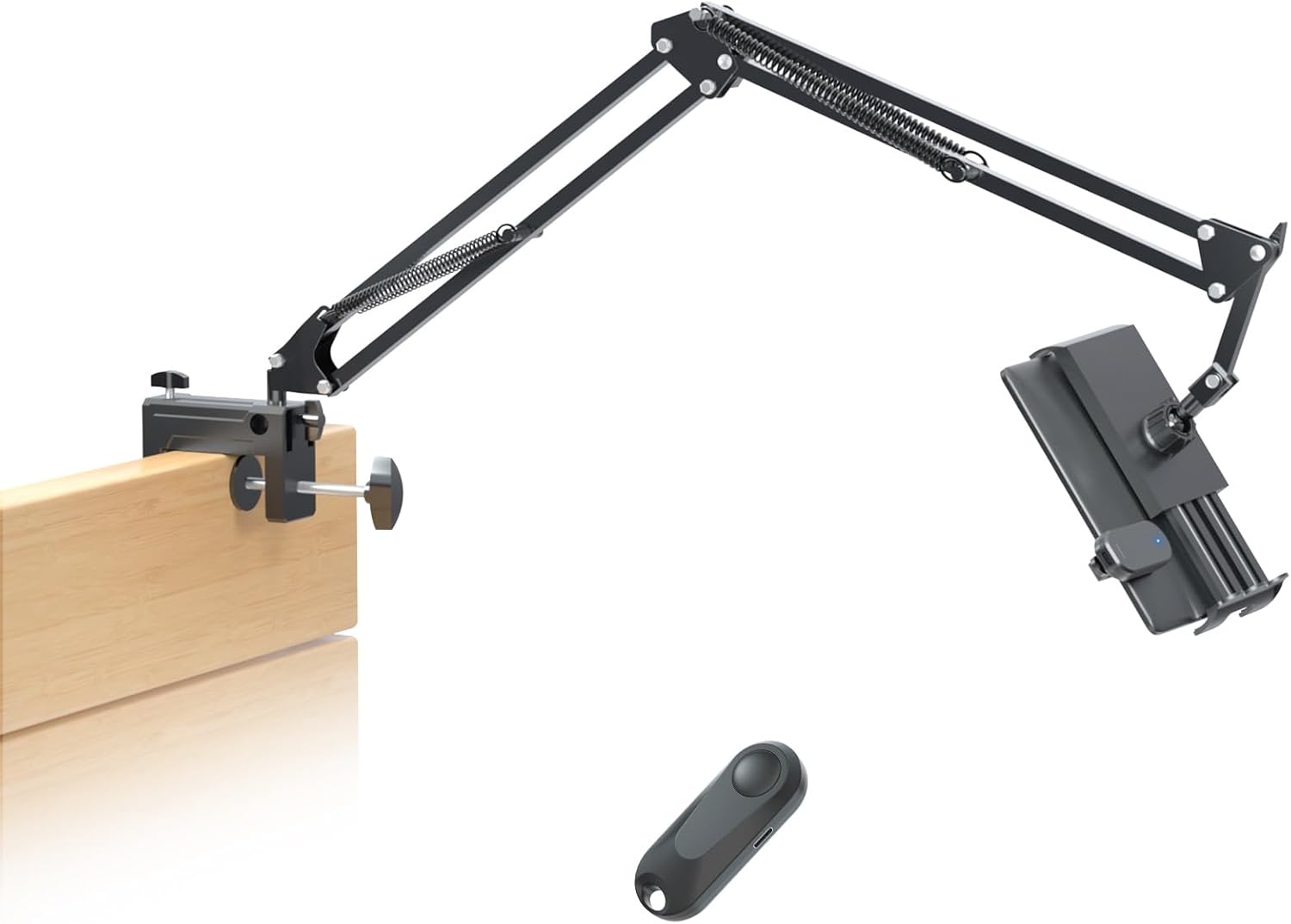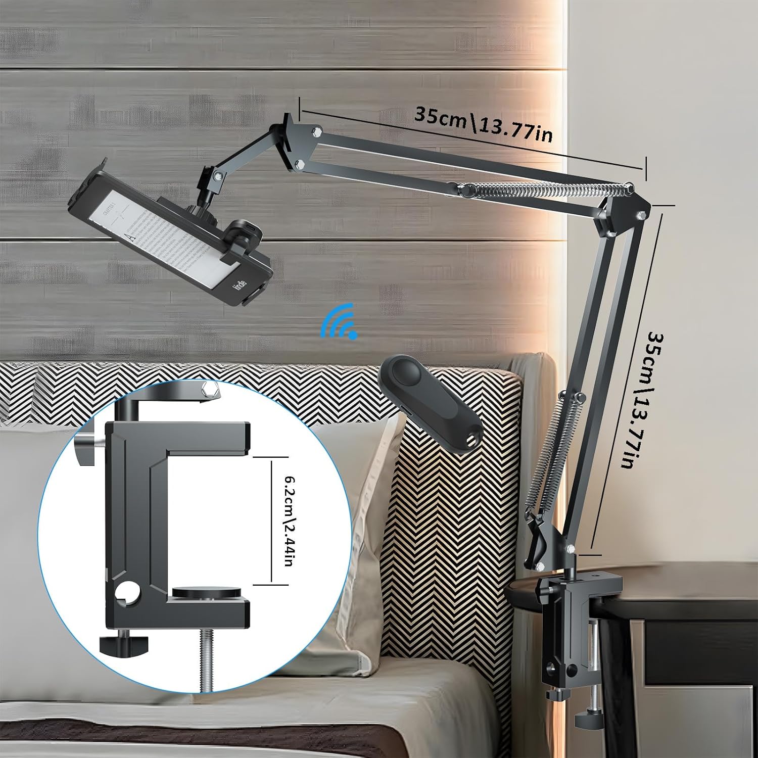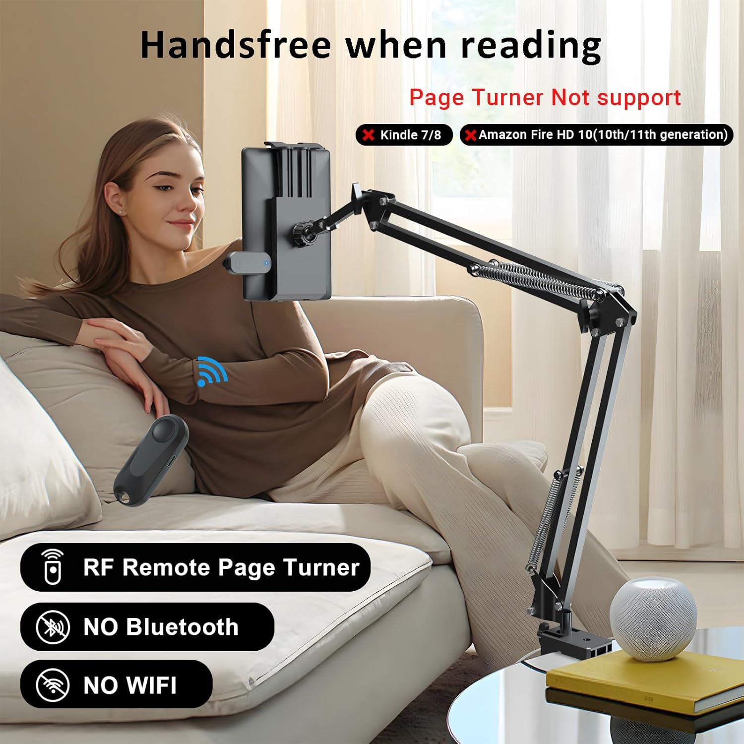 Tablet Holder for Kindle Reading in Bed with Remote Page Turner, Easy Adjust Hands Free Lazy Arm Mount for Kindle Accessories, Gifts for Readers