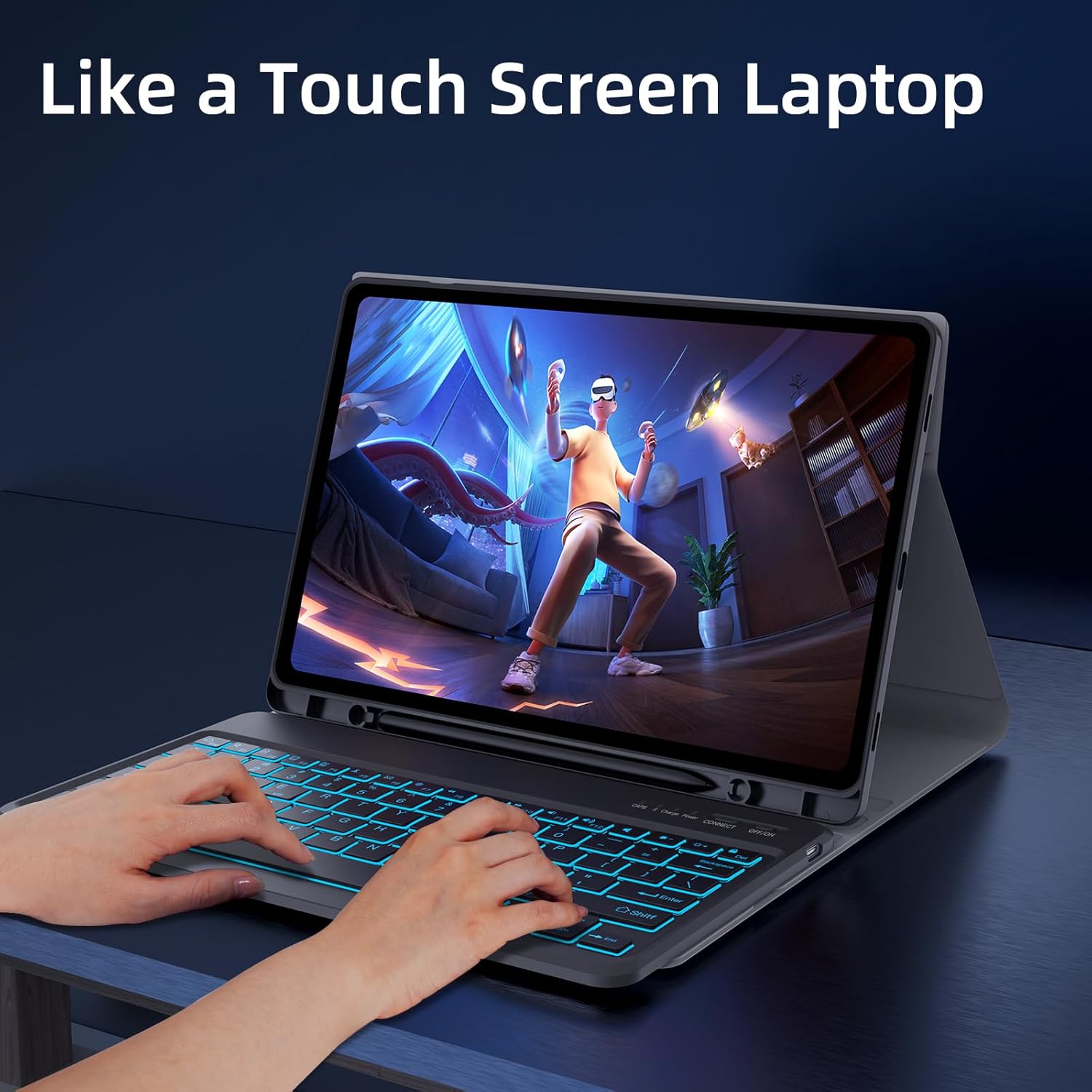 - 【Detachable Magnetic Keyboard】➔ Easily snap the wireless backlit keyboard on/off your Samsung tablet case. Adjustable angles adapt to your typing or viewing needs.