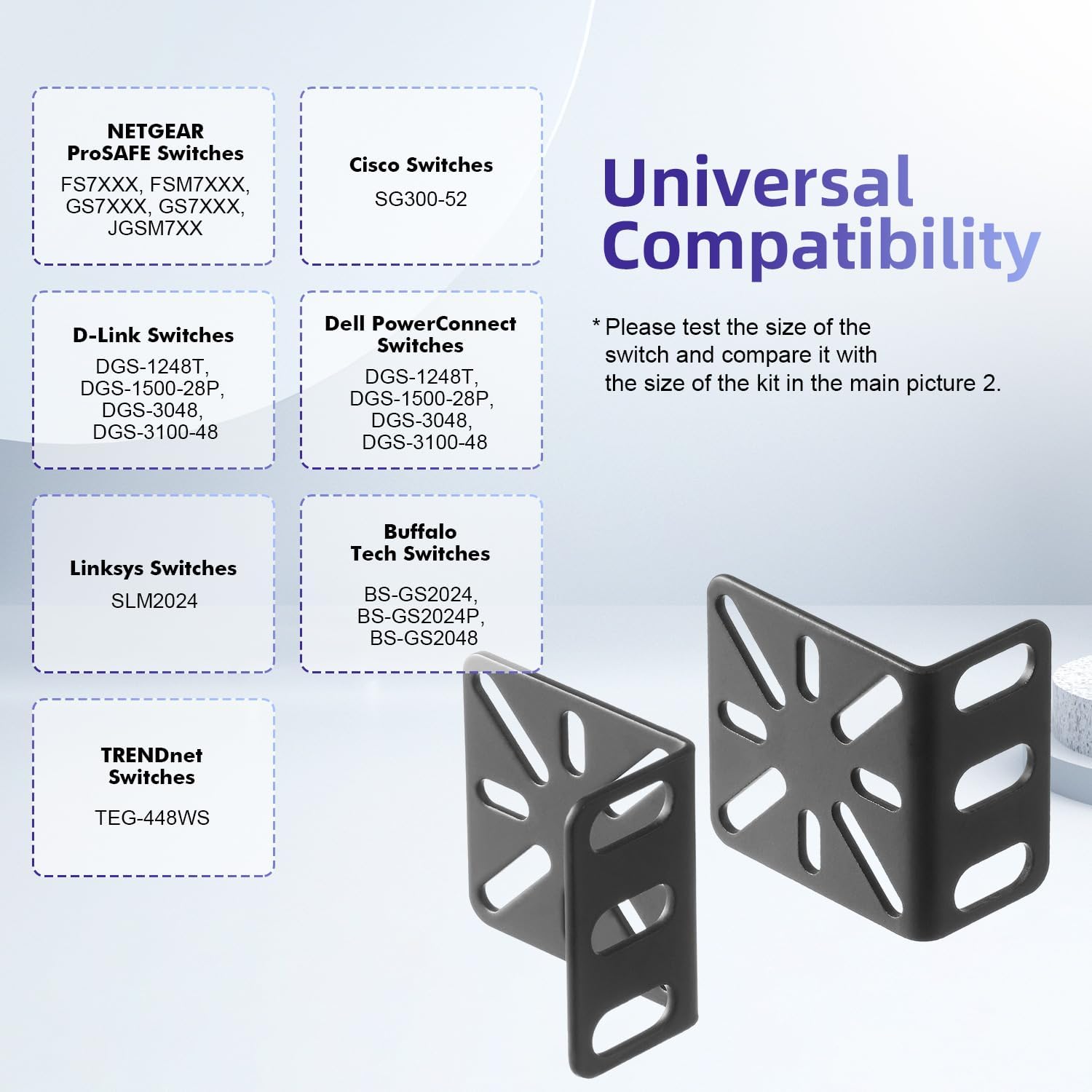 - 【Wide Compatibility】Compatible for most of 17.3 inch Buffalo Tech, Cisco, NETGEAR, Dell, D-Link, Linksys and TRENDnet Products. Please check the compatibility model list blow before purchasing to ensure this rack mount kit is compatible with your switch.
