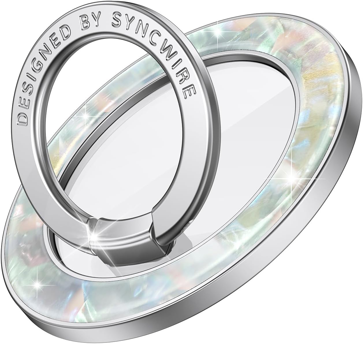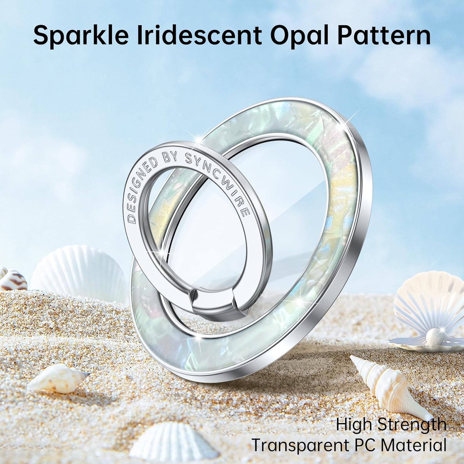 - 【Fashionable Magnetic Phone Grip】Syncwire shiny opal magnetic ring holder is a stylish and sleek accessory that adds a touch of elegance to your phone. Its modern and fashionable design is perfect for those who appreciate both style and functionality in their phone accessories. With its eye-catching appearance and trendy aesthetic, the phone ring grip is a must-have for fashion-forward individuals looking to elevate their phone's look.