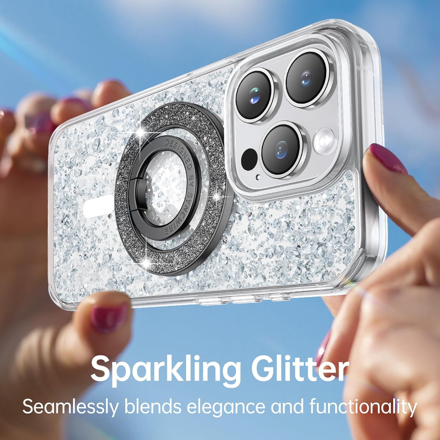 Syncwire Magnetic Phone Grip for MagSafe, Sparkle Phone Ring Holder, Rotatable Kickstand Bling Phone Ring Stand Removable MagSafe Accessories for iPhone 15 Pro Max 14 13 12,Android - Black Diamond
