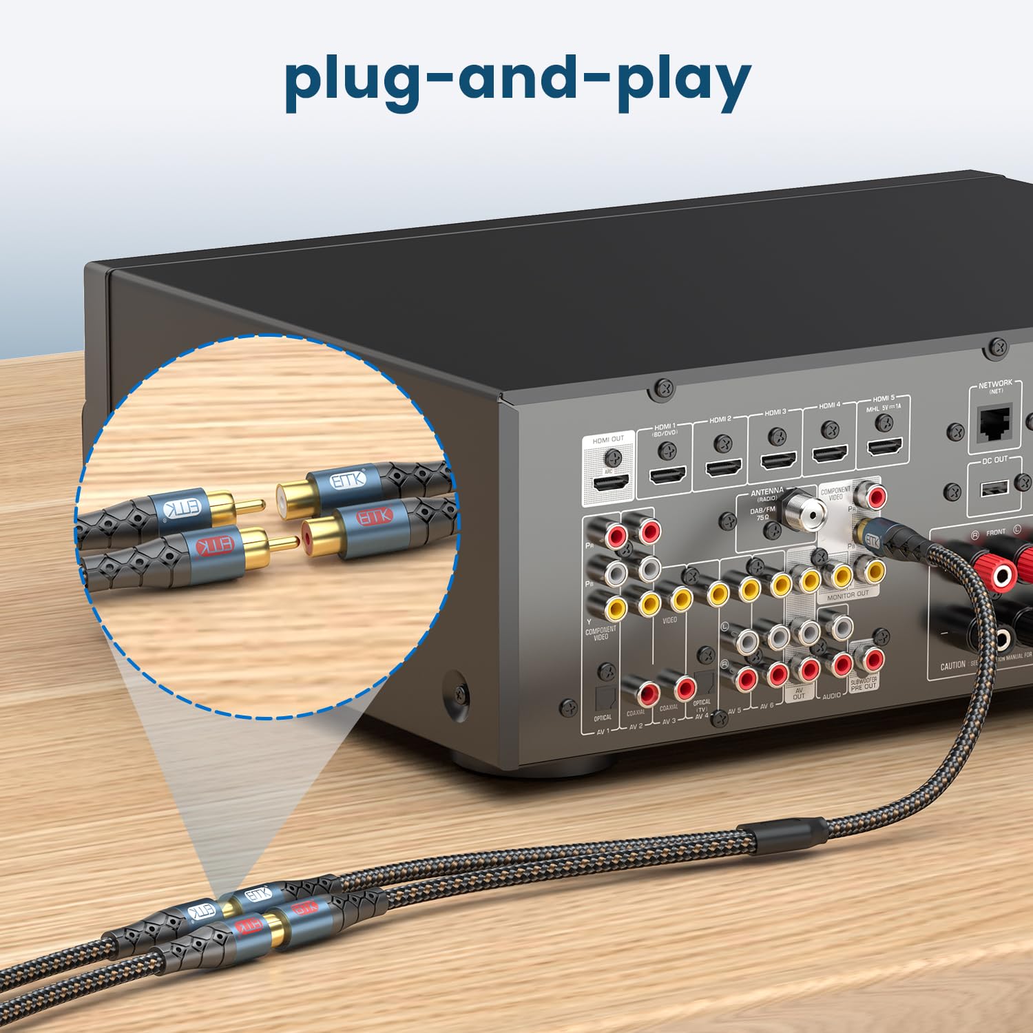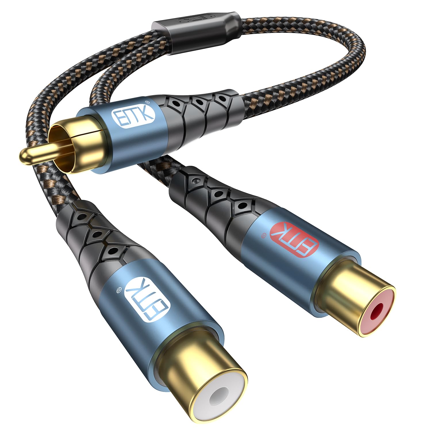 EMK RCA Splitter 1 Male to 2RCA Female Copper Shell Gold-Plated Y Adapter RCA Male to 2RCA Female Cable RCA Y Splitter Connectors Extension Cord 1ft/0.3m