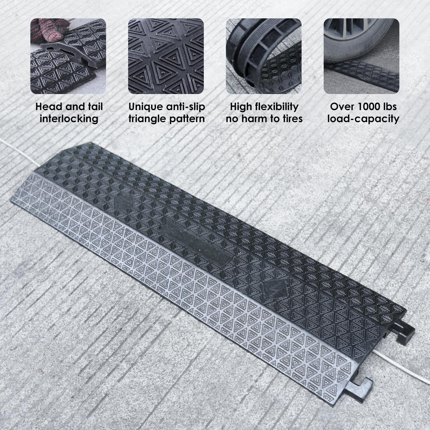 Double 40" inch Rubber Drop Over Cable Cover, 2 Pack Prevent Tripping Floor Cord Protector, Interlocking Cable Cover, Drop Track Cable Ramp, for Home, Office, Store, Warehouse (Wide - 2Pack)