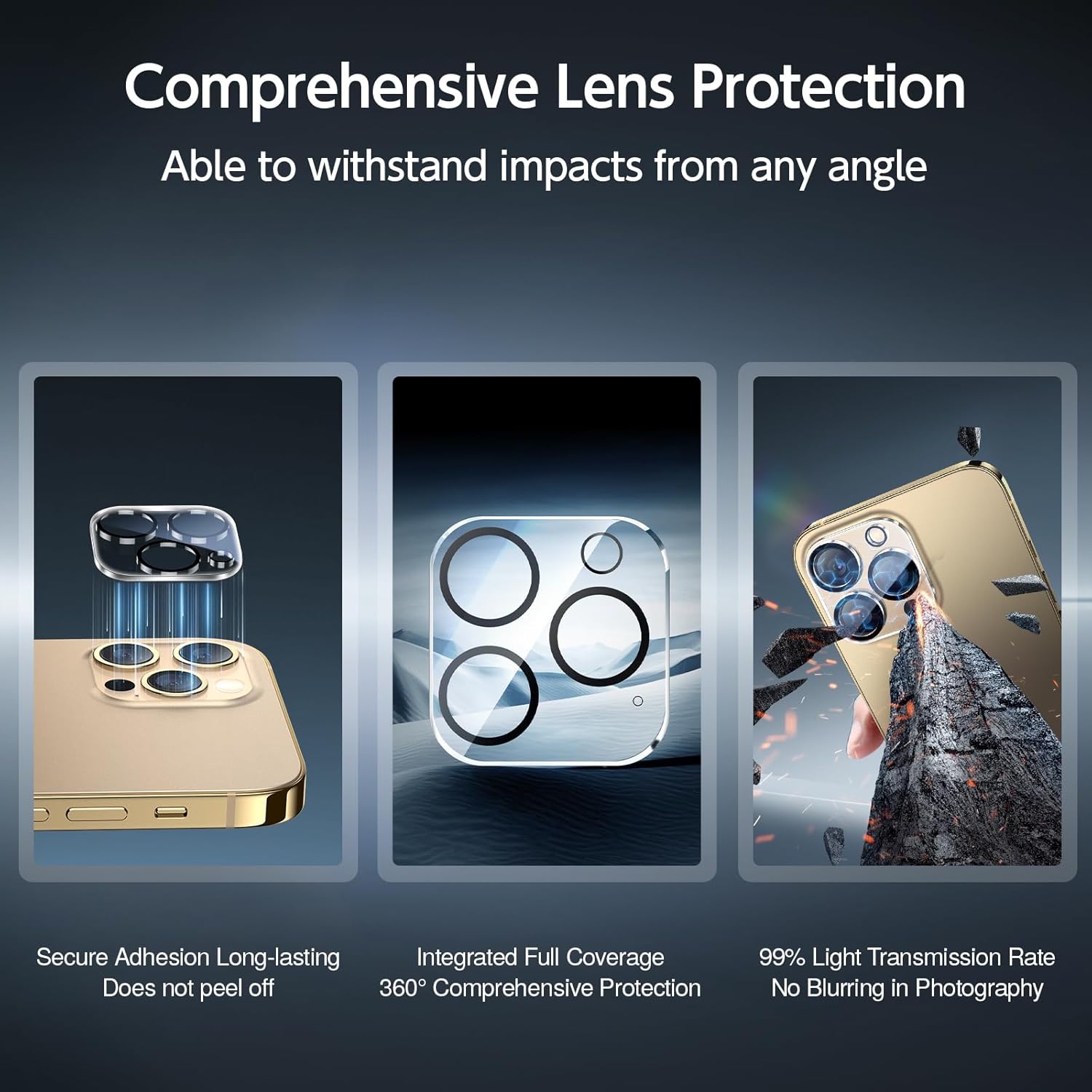 - 【Camera Lens Protector and Design for iphone 12 Pro】Only compatible with iphone 12 Pro and most cases friendly(The back must be hollow for camera lens protector), and you can choose other models if you has other phone models. Same like the screen protector, the camera lens protector made from superior 9H tempered glass too, it can protect your camera lens from scratches and high-impact drops.