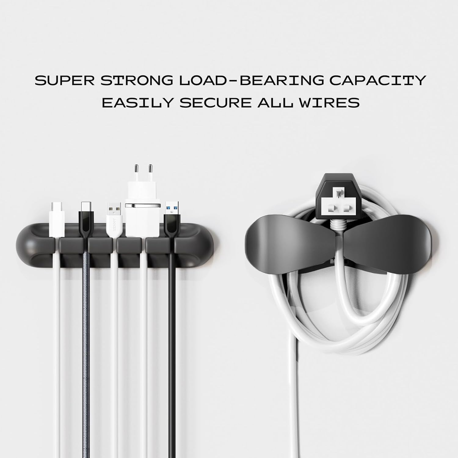 USB Cable Organizer Clips Cord Holder,6 Packs (7-Slots) Black Self Adhesive Desk Cord Cable Management