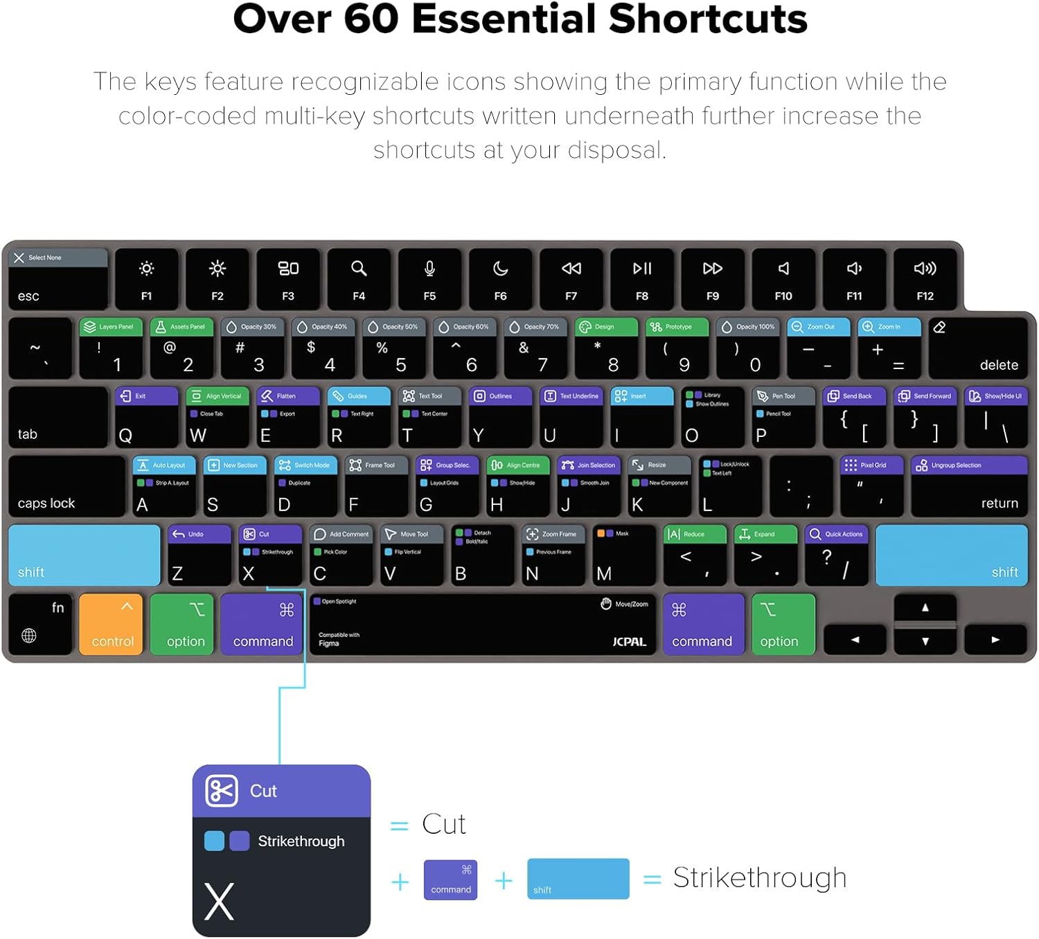 - Vivid screen printed design with a guide to over 60 essential shortcuts for Figma the Collaborative Interface Design Tool. Printed directly on the ultra-thin 0.3mm silicone keyboard protector.