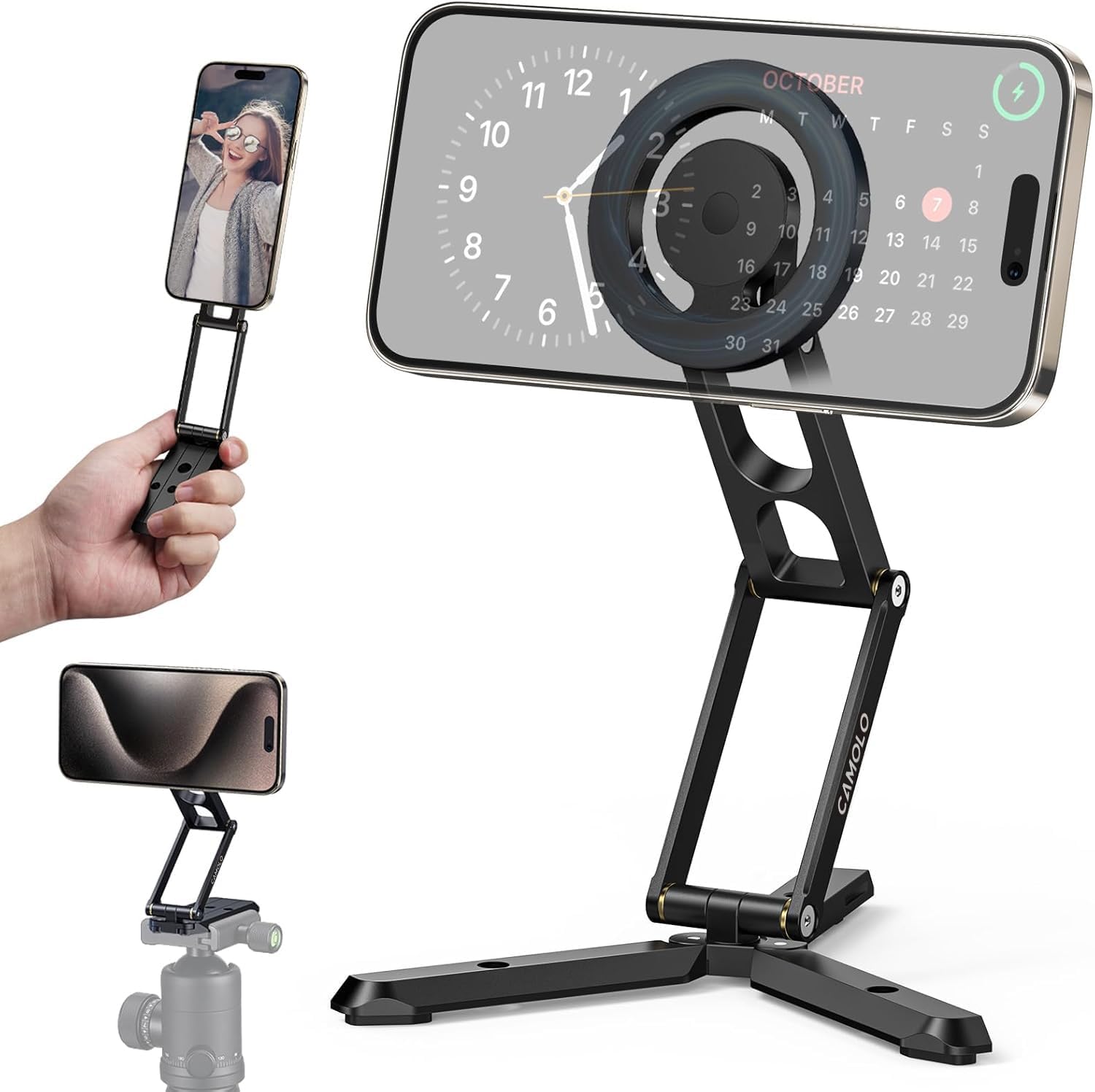 - Steadfast Stability with Hidden Split Legs✅ Our Foldable Pocket Tripod features three split legs (or transform into a stand base) dramatically boosting steady footage to eliminate unwanted blur. The powerful magnet ring with a 3 lbs holding force, paired with non slip rubber pad provides a secure and stable grip and prevents accidental falling off