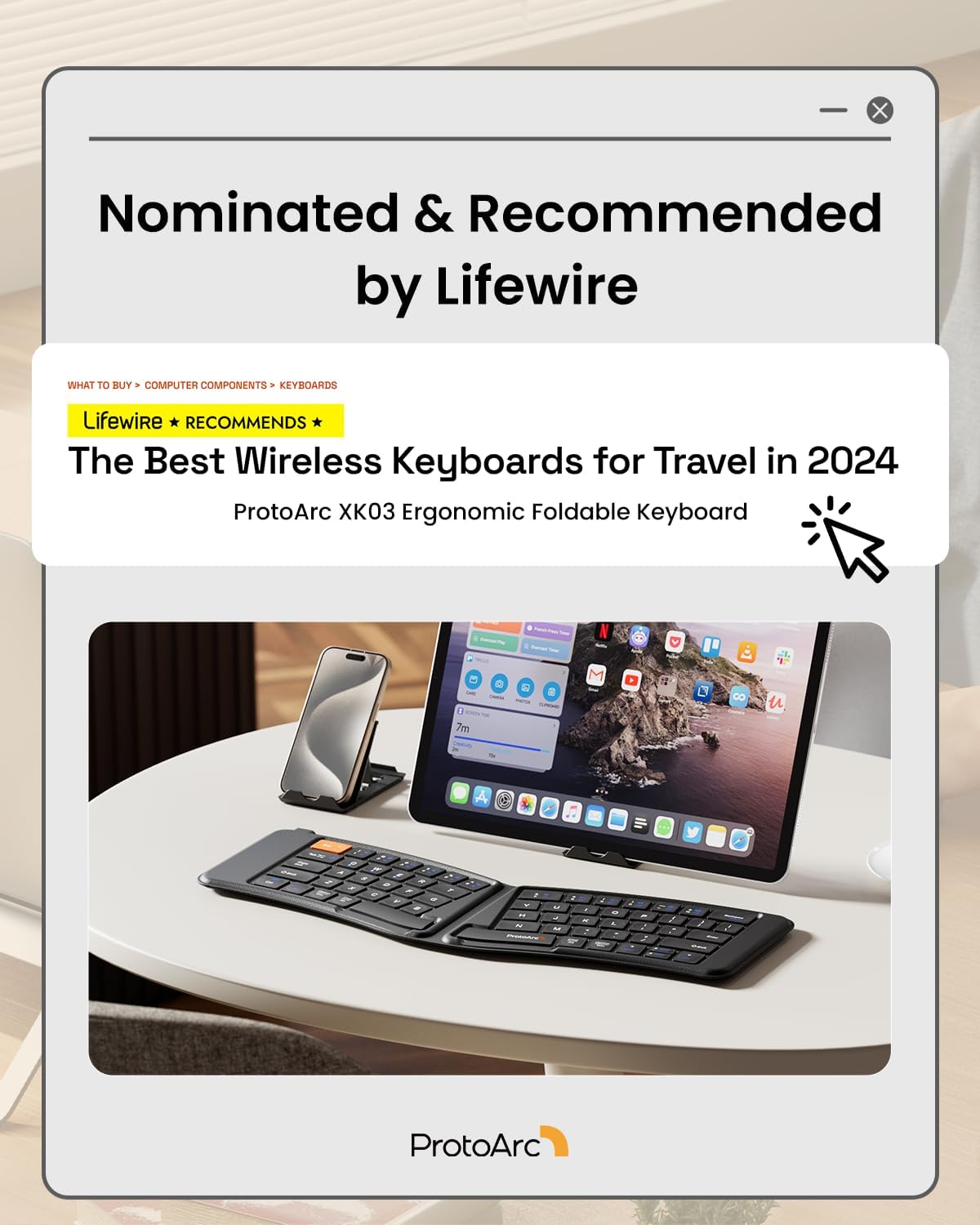 - Ergonomic Foldable Keyboard: ProtoArc foldable bluetooth keyboard is featured with ultra-slim, 360° foldable and ergonomic split design. A portable bluetooth keyboard perfect for travel and business trips. Great for use on the airplanes, libraries, cafes or wherever on the go.