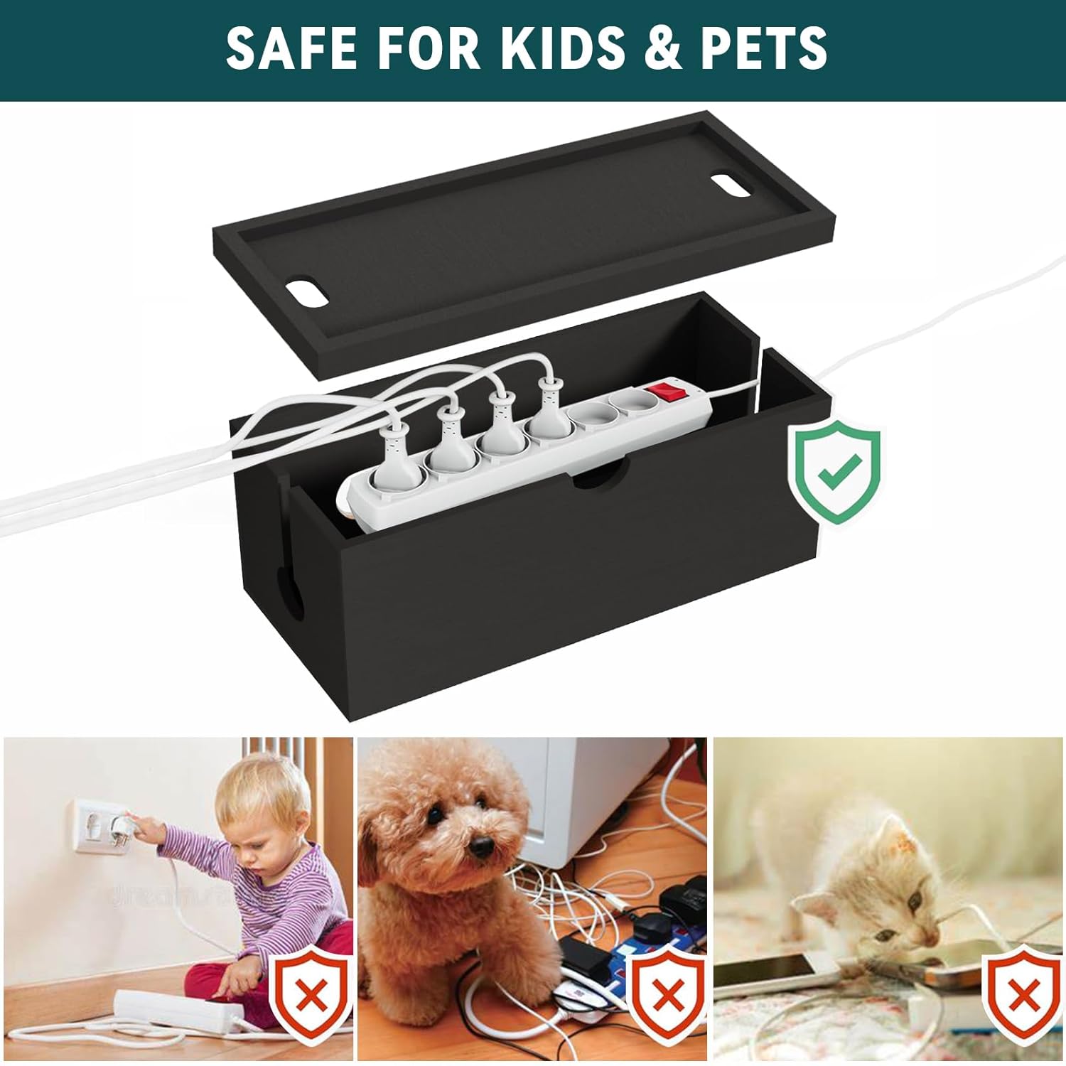 - 【Kid And Pet Friendly】Our cable storage box protect kids and pets from directly touching the power strips and other electrical equipment and meanwhile reclaim lost floor and desk space.