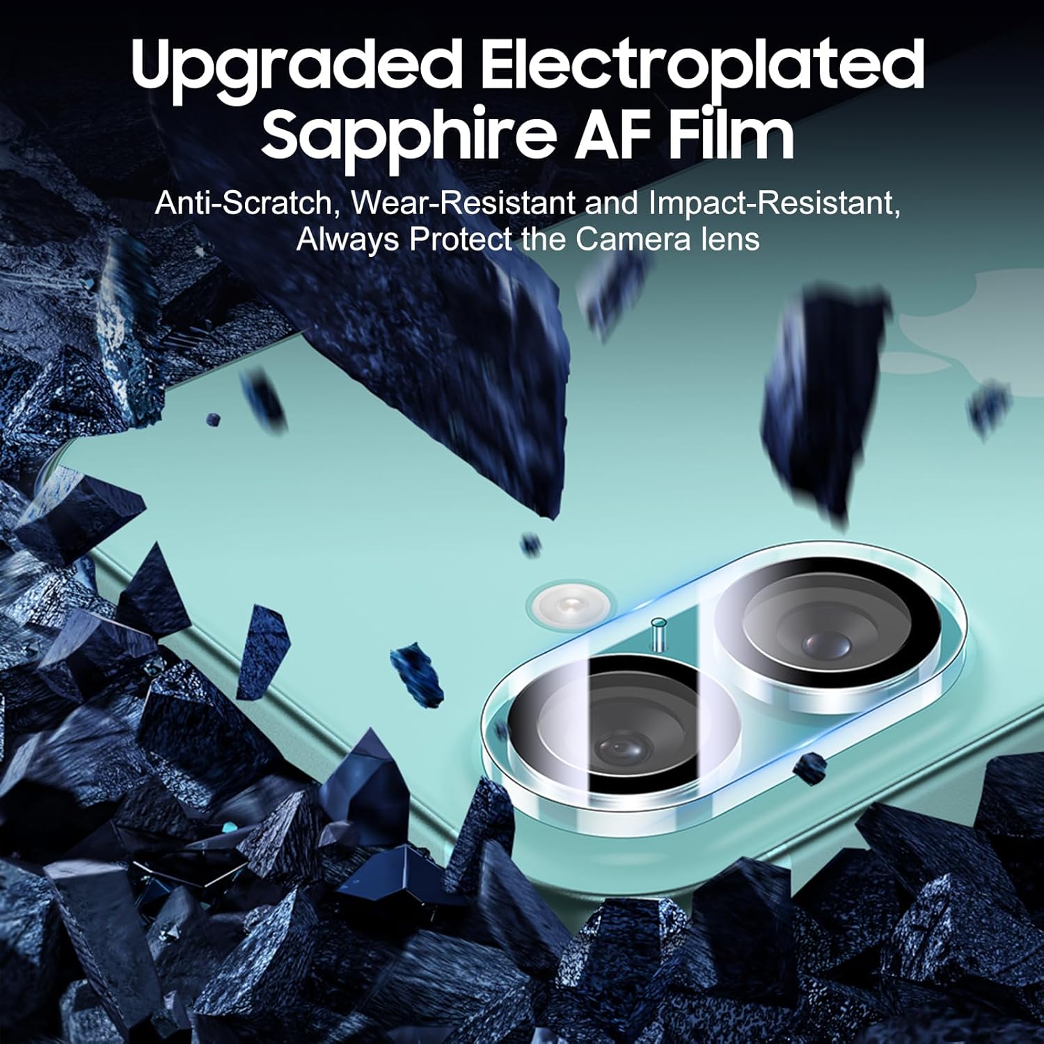 - 【4th Gen Upgraded Protection Design】UniqueMe iPhone 16 / 16 Plus Camera Lens Protector has been designed to provide durable and effective protection for the camera lens. It has been upgraded to its 4th-Generation integrated version with Anti-glare Aperture and an Electroplated Sapphire Super Hard AF film camera protector screen.