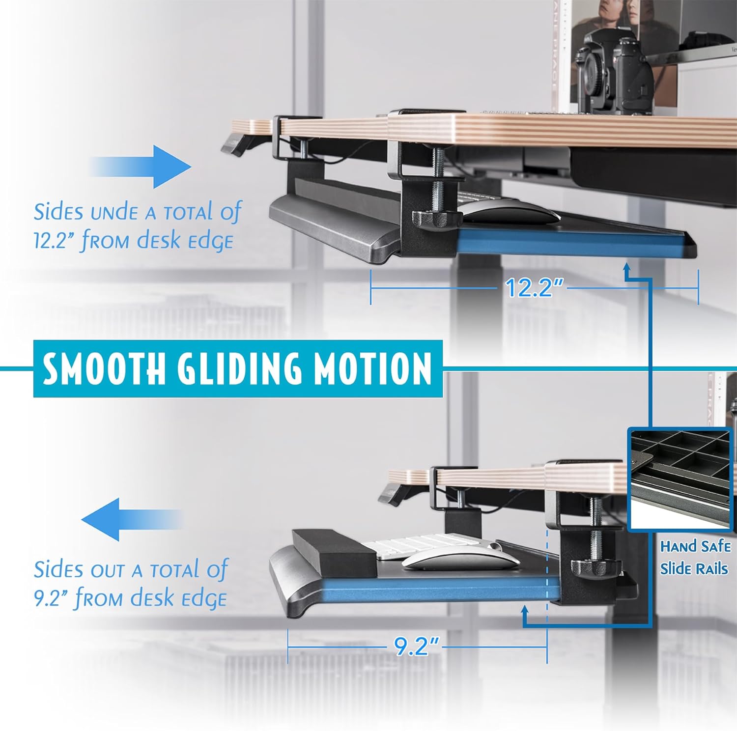 EHO Large Ergonomic C-Clamp Keyboard Tray Mount Under Desk with Wrist Rest, Slide-Out Platform 27.5" (31.8" Including Clamps) x 12.5", Pull Out Keyboard & Mouse Tray for Home or Office, Black