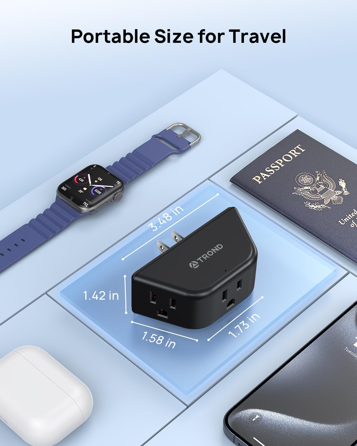 - Handy and Mighty: The small size of 3.48 x 1.73 x 1.42 inches is perfect for your business trip or travel. This plug extension outlet can save you space, especially suitable for tight spaces, like behind the couch, behind furniture, and so on