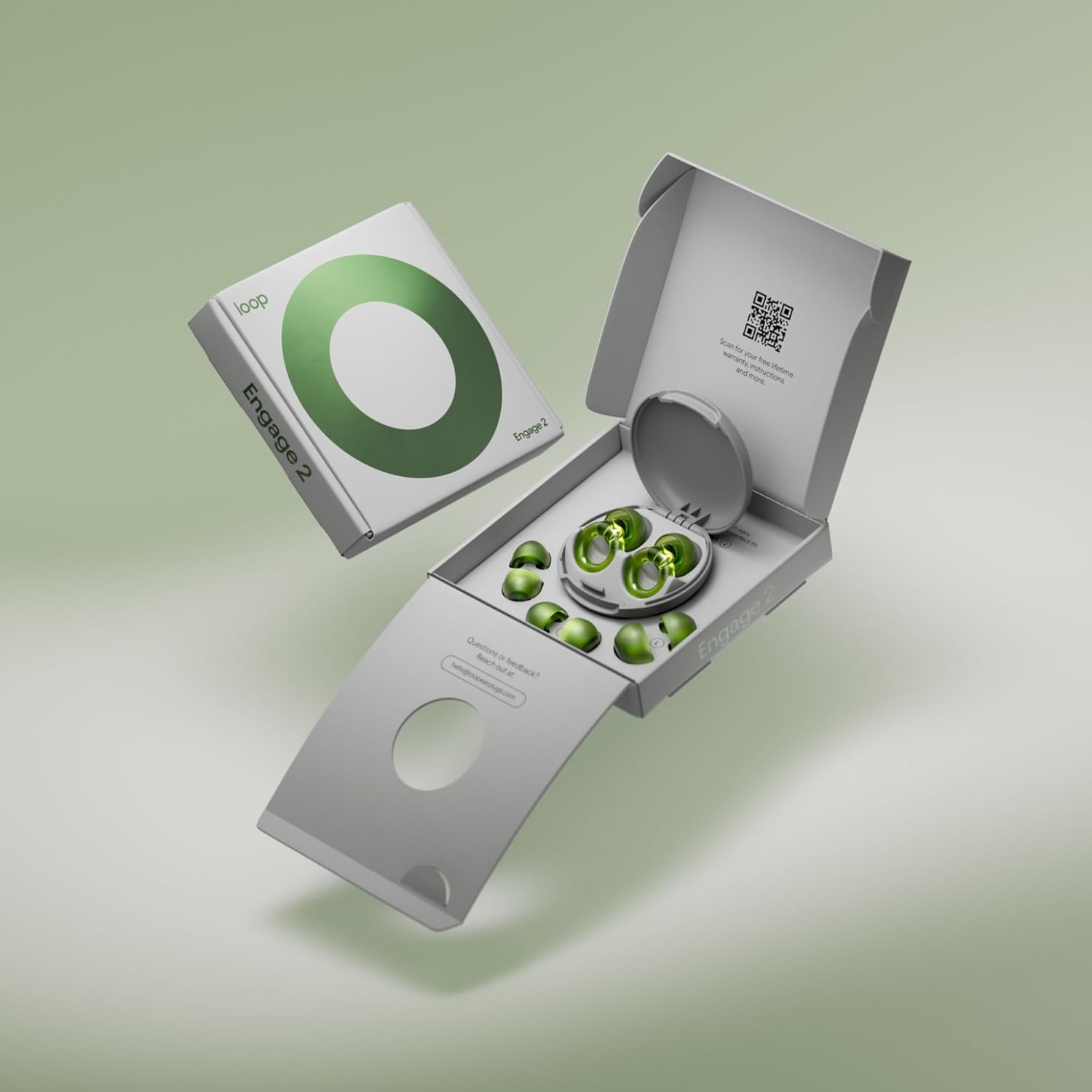 - IN THE BOX – 1 set of Loop Engage 2 earplugs, 4 sets of silicone ear tips (sizes XS + S + M + L), 1 portable and convenient keychain Carry Case.