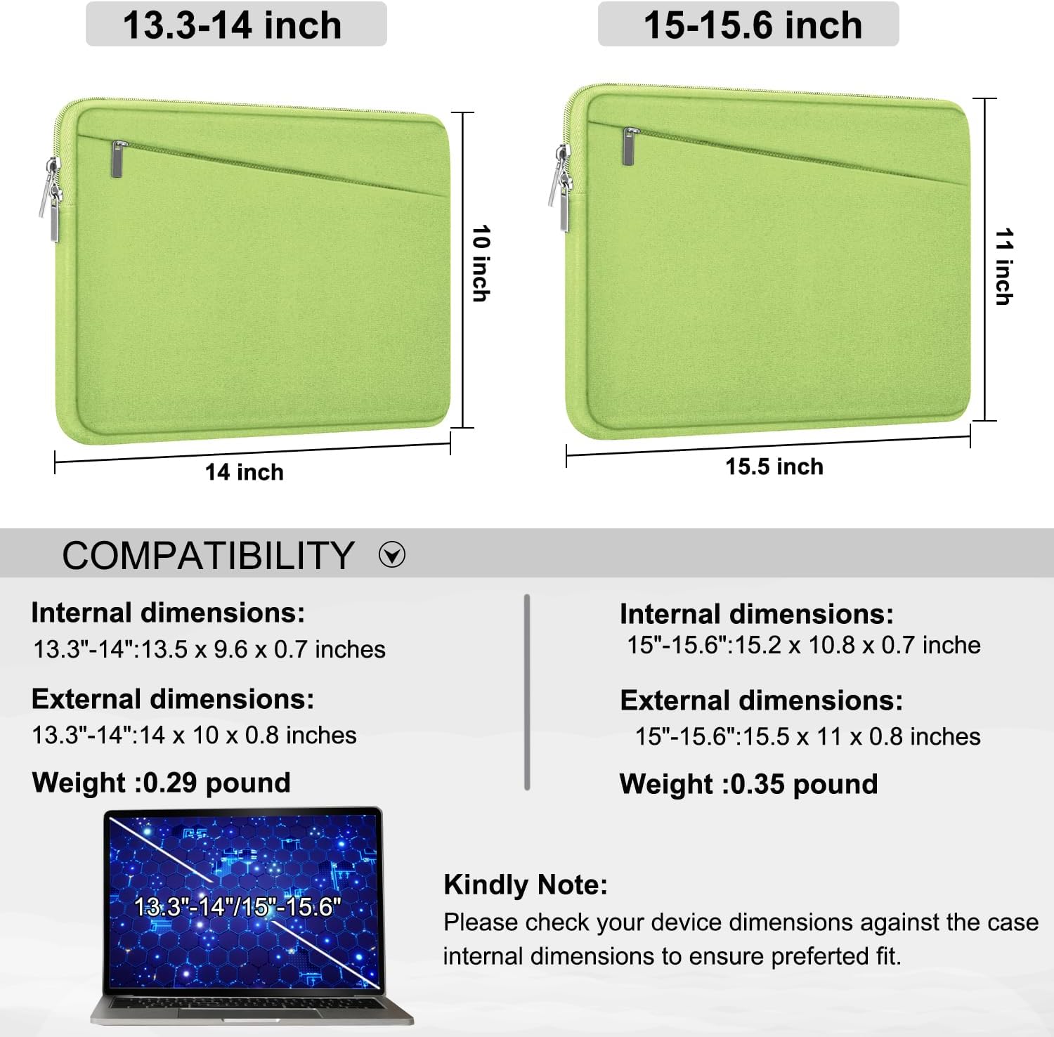 Laptop Case 15.6 inch, Slim Computer Carrying Bag Protective Cover Briefcase with Front Pocket, Durable Laptop Cover for 15-16 Inch HP, Dell, Lenovo, Asus, Notebook, Light Green