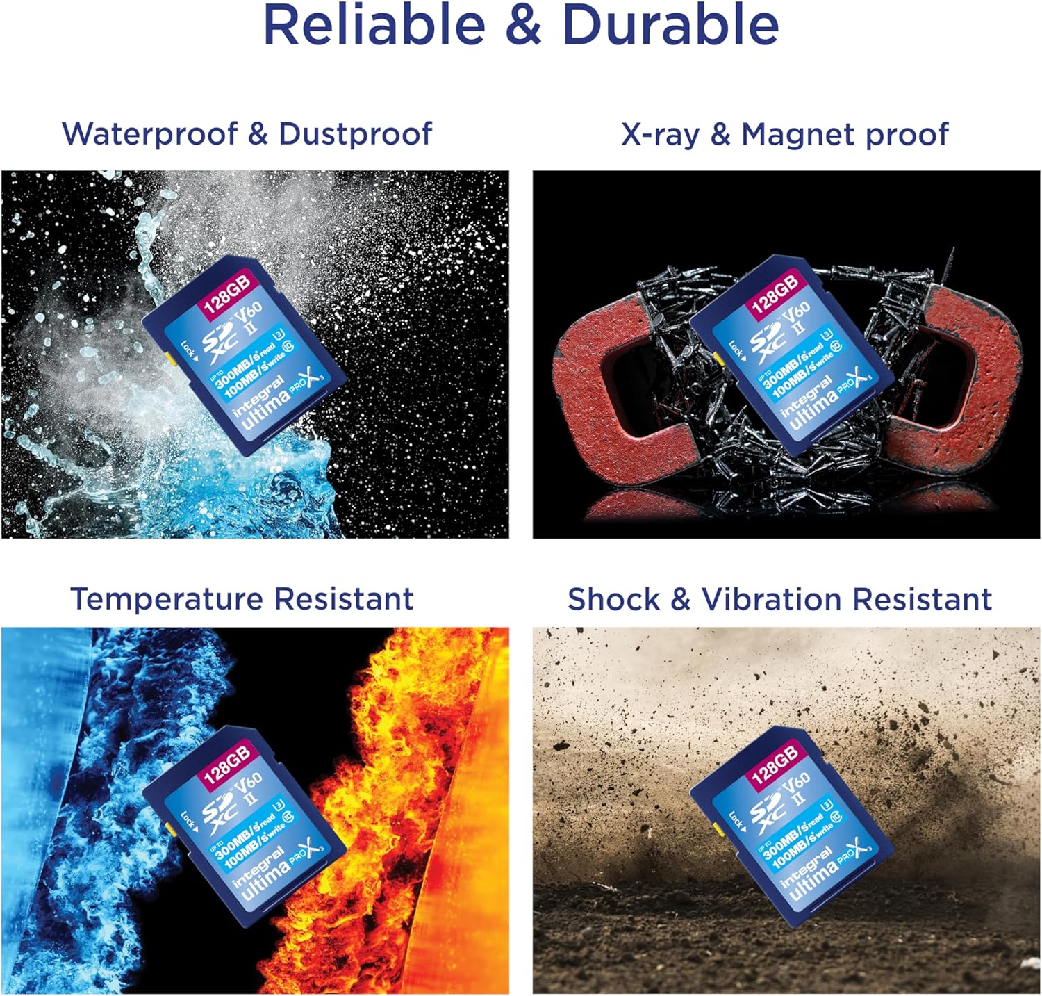 Integral 128GB UHS-II SD Card V60 Up to 300MB/s Read and 100MB/s Write Speed SDXC Professional High Speed Memory Card