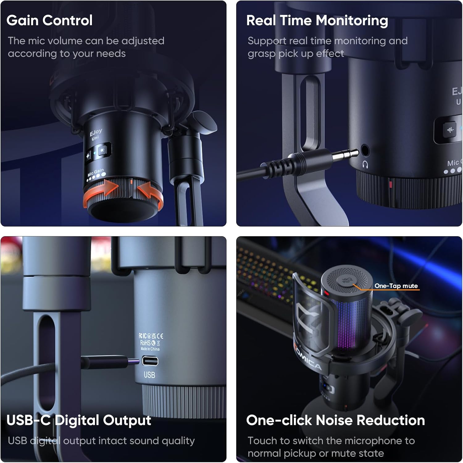 COMICA EJoy Uni USB Gaming Microphone for PC, PS4, PS5, and Mac, RGB Computer Mic for, Twitch/Streaming/Podcasting/YouTube/Recording, Noise Cancellation Mic with Mute, Gain, Monitoring