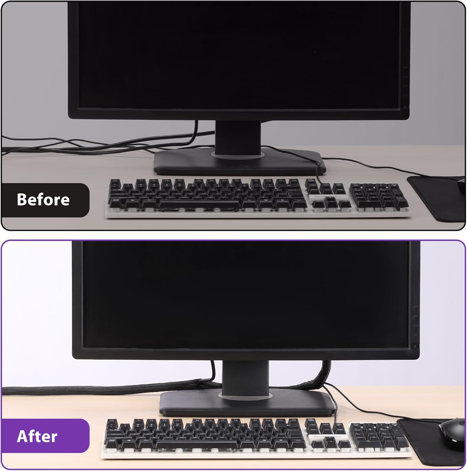 - Flexible & Talented Material: The wire management sleeve is made of high-density PET, with a working temperature range of -50°C to +150°C and a melting point temperature of 240°C ± 5°C. It is highly wear-resistant and safe. The wire wrap also has the highest flame retardant rating: UL94 V-0, ensuring durability. Environmental class: ROHS, no chemical odor and reliable.