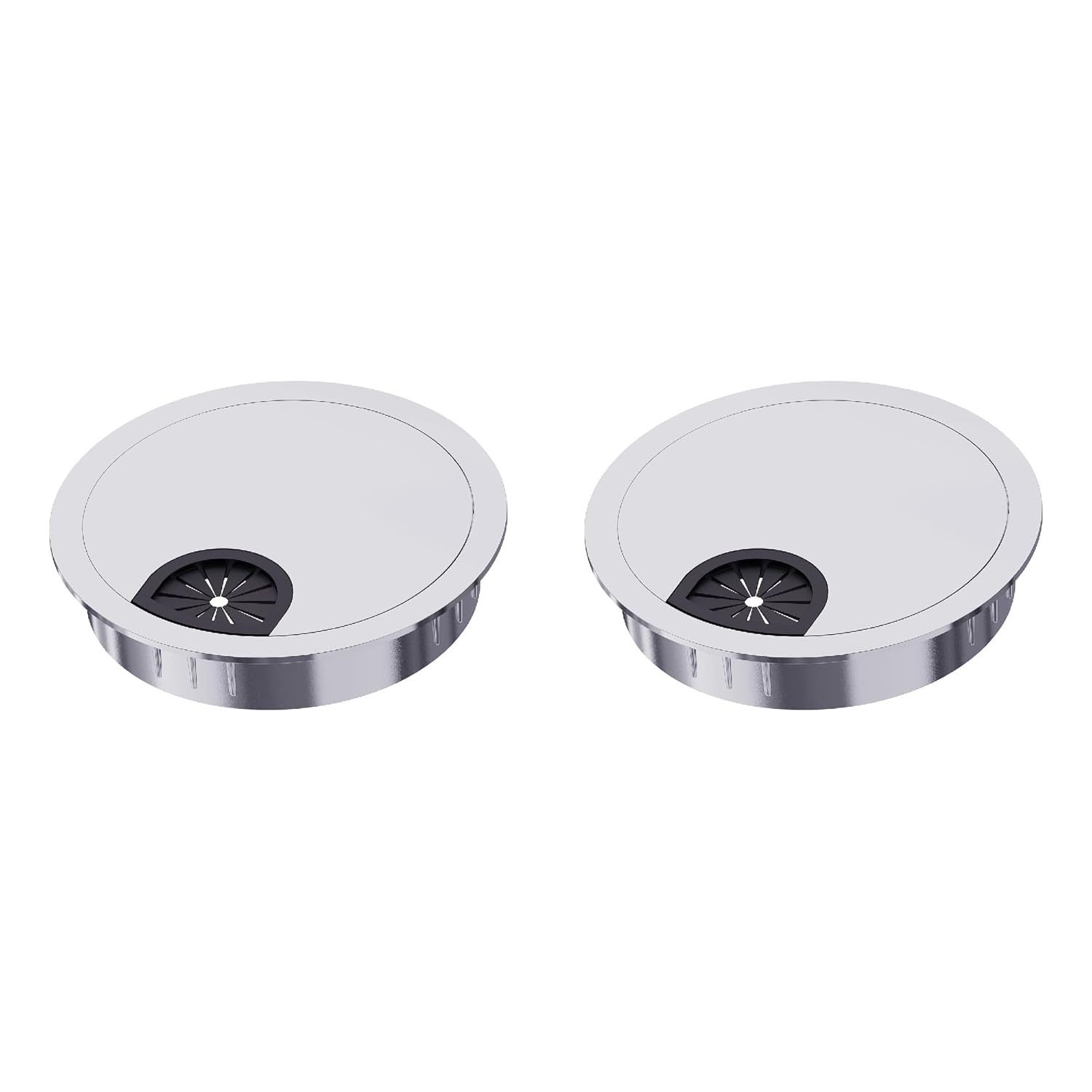2 Pack Desk Grommet 2-3/8 Inch 60mm, Zinc Alloy Computer Desk Wire Hole Cover, Office Desktop Cord Cable Hole Metal Ring, Silver Tone