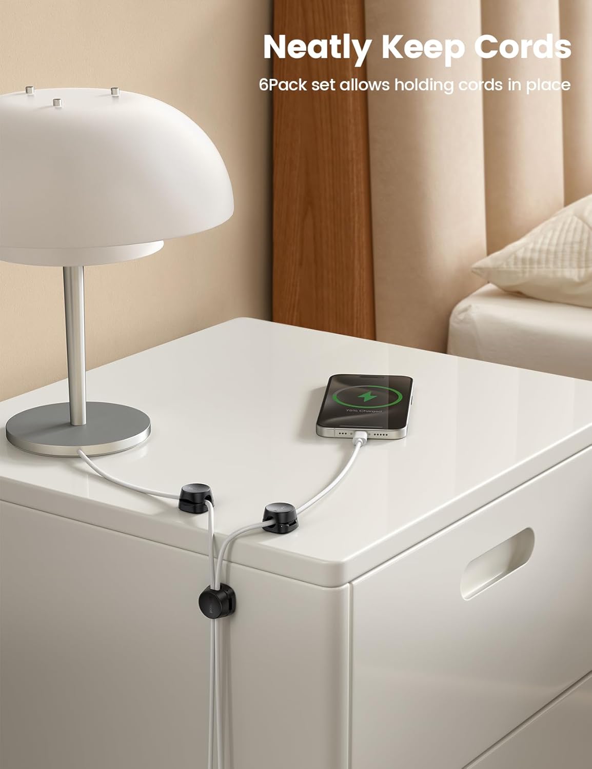Cord Organizer [1s Lock] Spring Cable Holder Clips - Lamicall 6Pack Desk Cable Management Clips, Phone Charger Cord [Smooth Adjustable], Adhesive Wire Organizer Keeper for Nightstand Wall Car Office