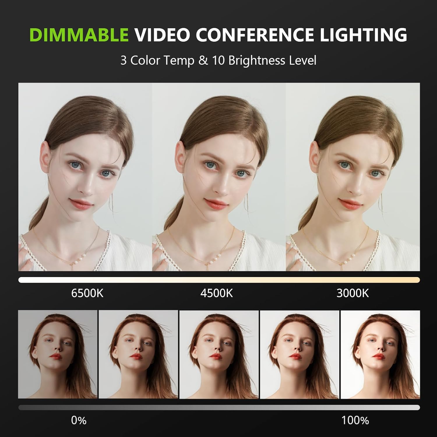 - Customizable Lighting & Dimming: Choose from 30 dimmable settings, 10 brightness levels (10%-100%), and 3 color temperatures (2700K-6500K) to perfectly suit any environment. Ideal for video calls, makeup tutorials, and content creation.