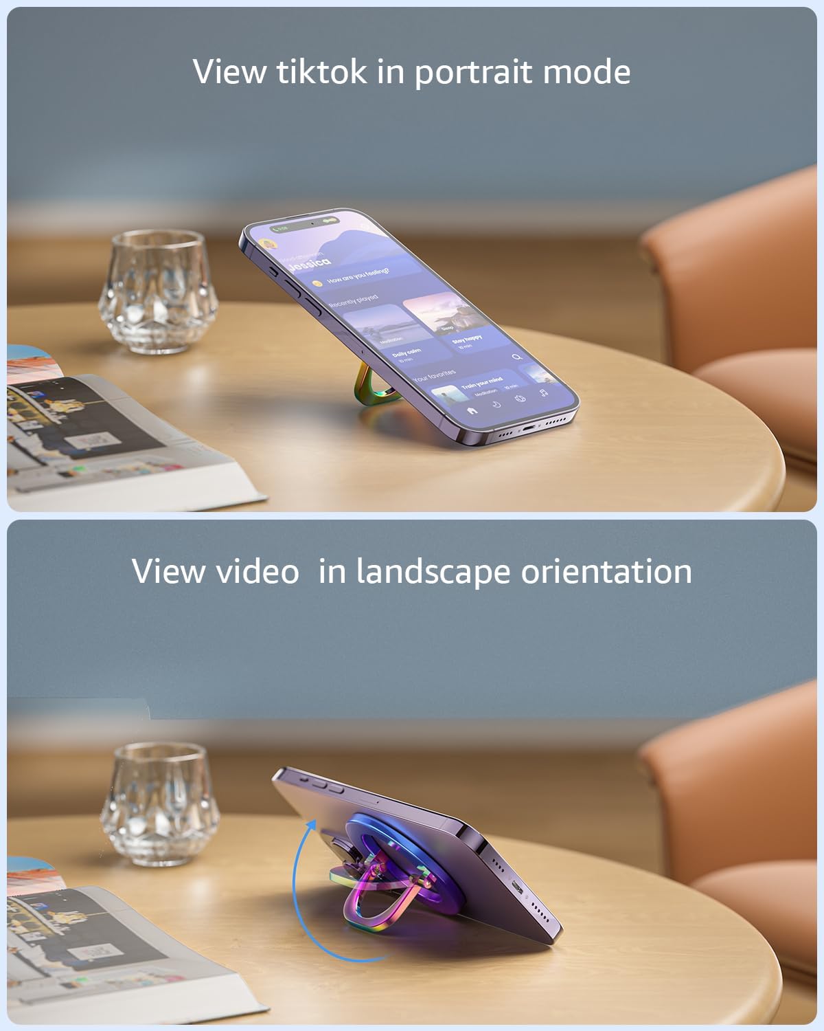 - 🧲Multi-Angle Magnetic Phone Grip: With a 360-degree rotation function, this MagSafe grip offers multiple viewing angles for a variety of scenarios. and You can hold your phone at any angle and height as you like. The phone ring grip is tested to withstand 30,000 times of folding without getting loose.