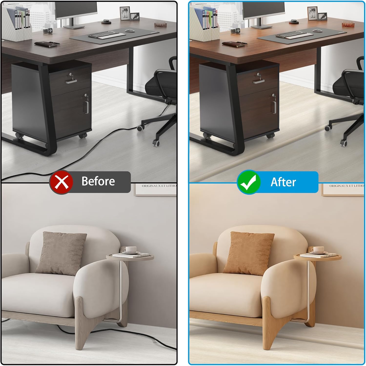 - Special Design with Single Cable Capacity: Suitable when you only need to conceal a single cable. For example, to conceal a speaker cable, a power strip cable, Ethernet cable, or other cables across open floors or countertops, ensuring a smooth and trip-free surface