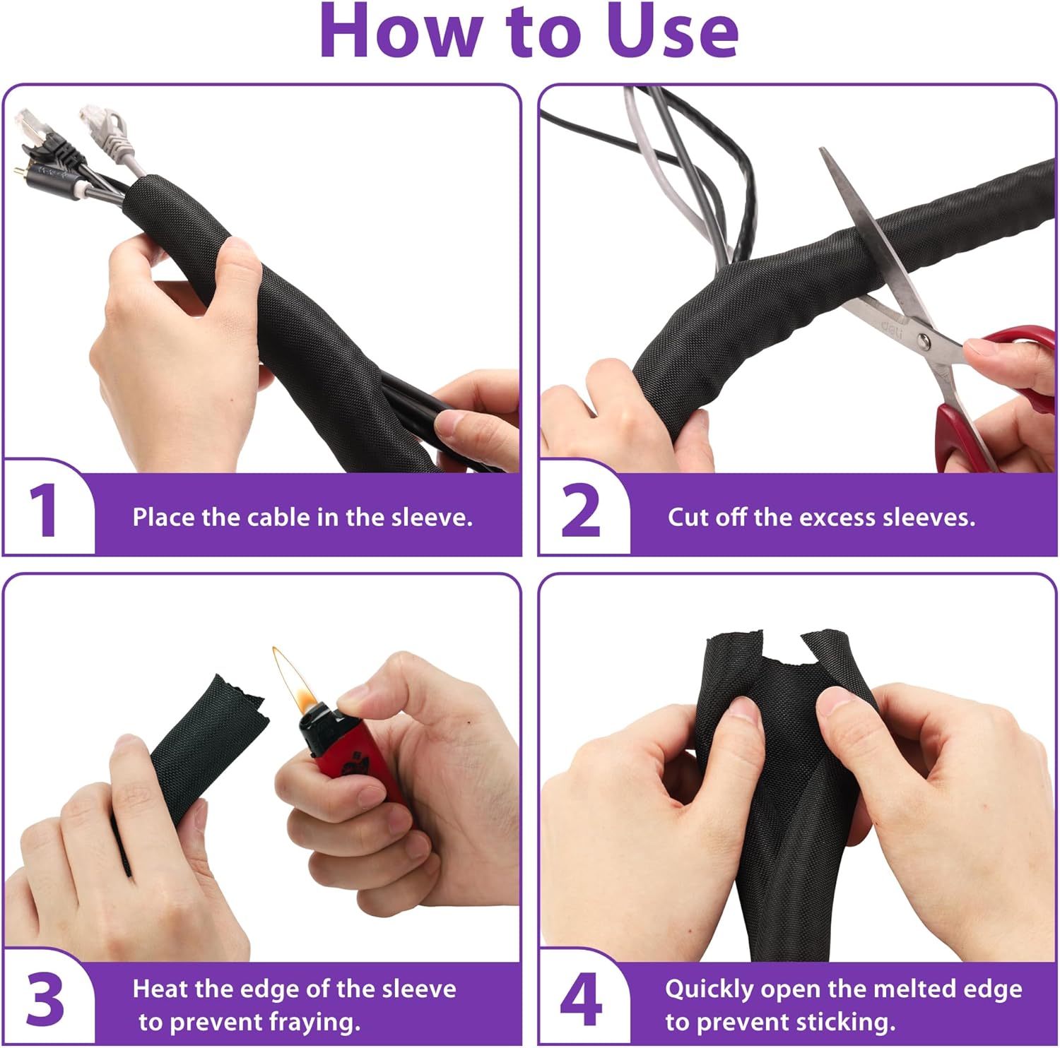 - Flexible & Talented Material: The wire management sleeve is made of high-density PET, with a working temperature range of -50°C to +150°C and a melting point temperature of 240°C ± 5°C. It is highly wear-resistant and safe. The wire wrap also has the highest flame retardant rating: UL94 V-0, ensuring durability. Environmental class: ROHS, no chemical odor and reliable.
