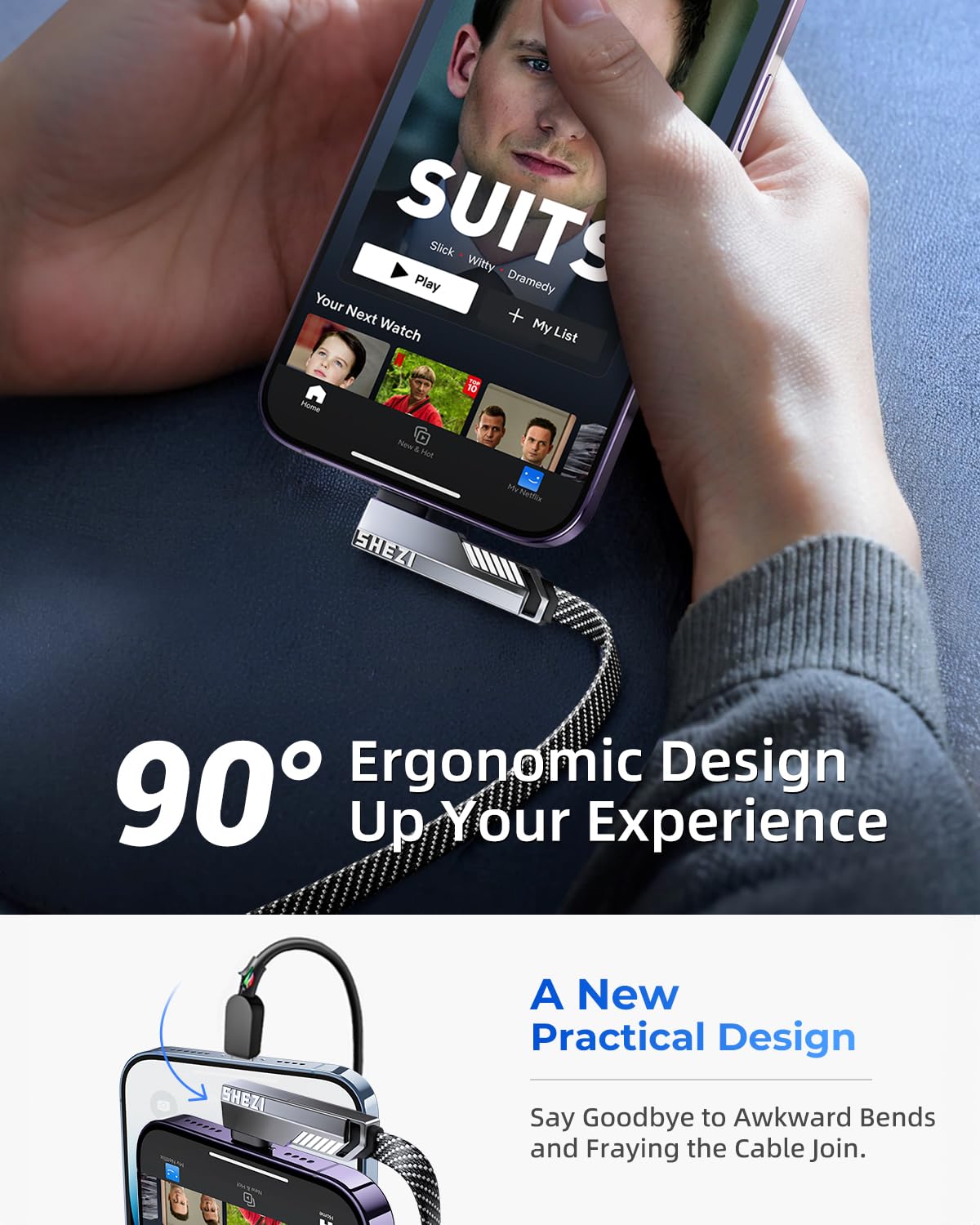 - Innovative 90-Degree Design: Enjoy comfortable device use while charging with our right-angle iphone cable, perfect for gaming, videos, or working on the go. Say goodbye to awkward bends! It is the ultimate accessory for a seamless experience