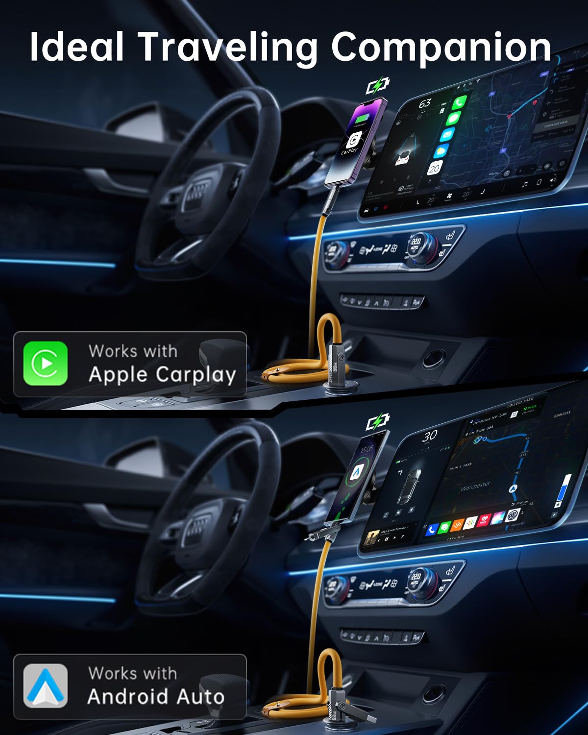 - Apply Carplay & Android Auto Support: The SHEZI 4-in-1 charging cable can be compatible with Apple CarPlay and Android Auto System. Keeps stably connected during the whole driving journey. But before using CarPlay, please confirm whether your vehicle supports the CarPlay system.
