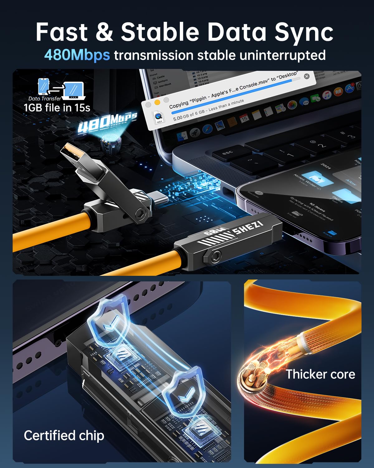 ![SHEZI Silicone 4 in 1 USB C Cable 60W 5FT Compatible with Lightning Cable, Fast Charging for iPhone/iPad Charger Cord [480Mbps Data Sync],Multi Charging Cable with Type C/USB A, Yellow](http://gizmodock21.com/cdn/shop/files/71ktbViKW8L._SL1500.jpg?v=1764900211&width=1445)