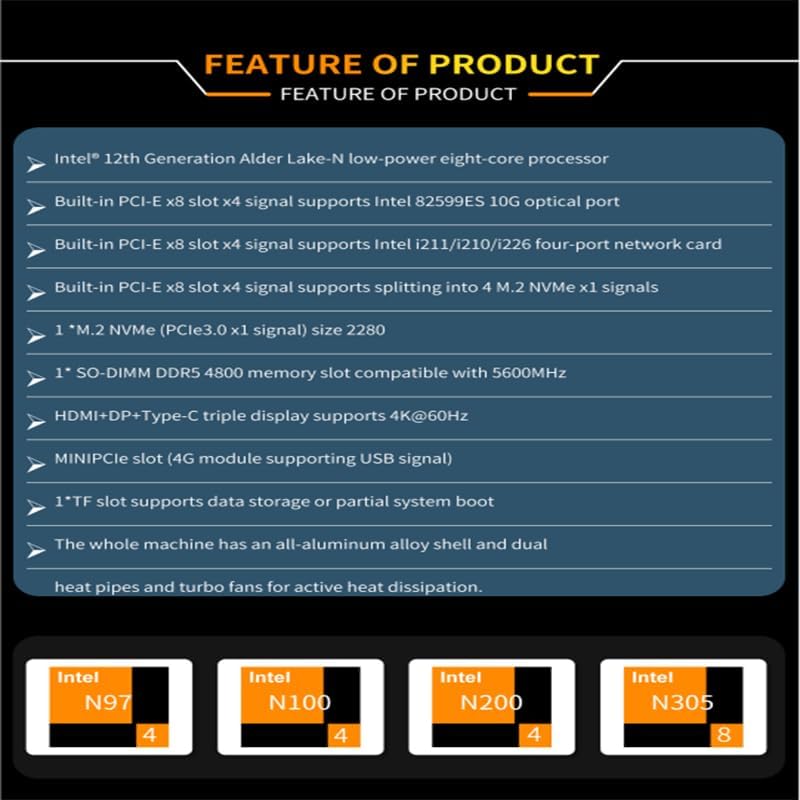 CWWK Intel Alder Lake N100(4C/4T Up to 3.4GHz)/N305(8C/8T Up to 3.8GHz) Dual SFP+10GbE Mini PC|4xIntel I226-V 2.5GbE |DDR5 Memory|PCI-E x4|HDMI+DP+Type-C (10 Gigabit N100, 16G RAM 512G SSD)