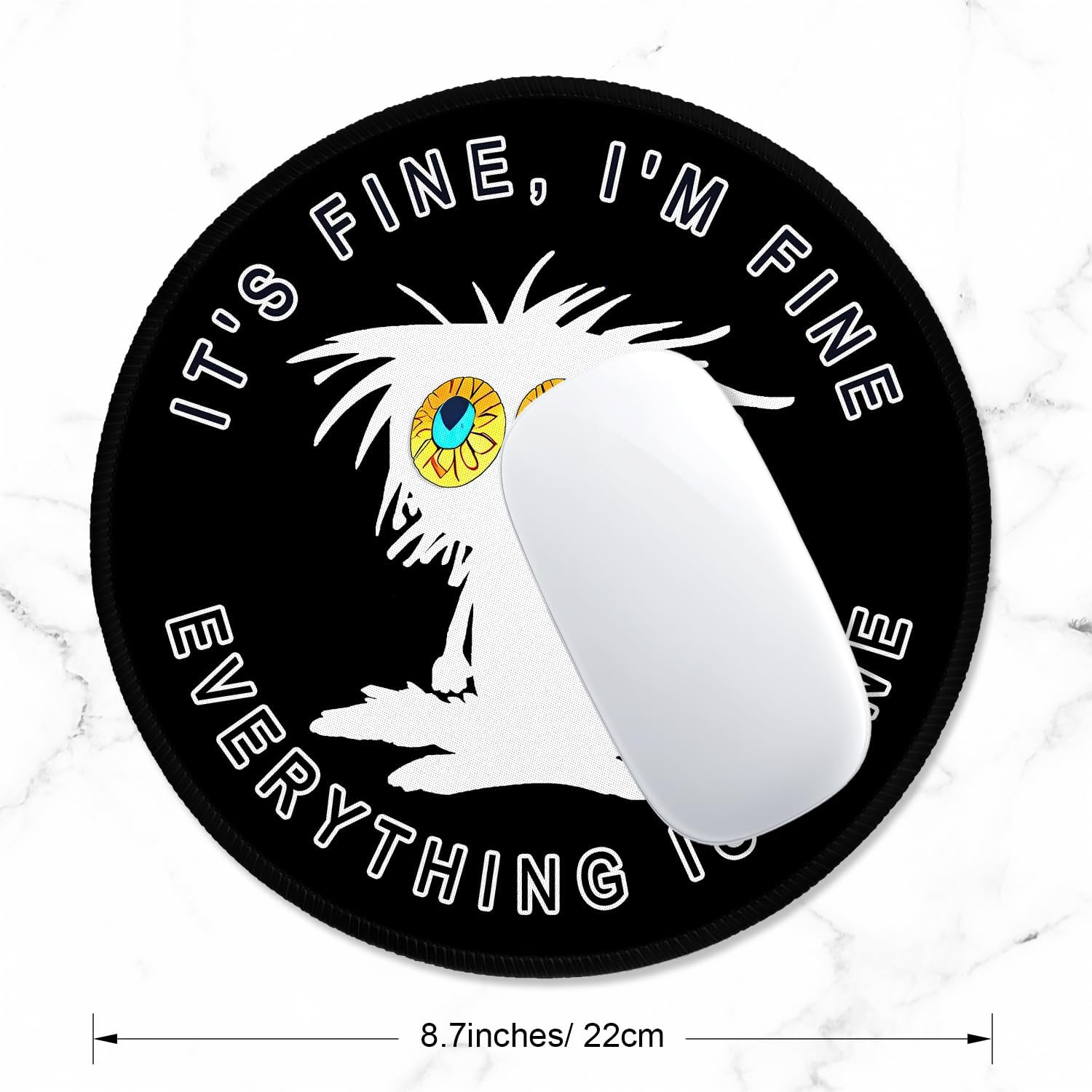 ITNRSIIET Round Mouse Pad with Stitched Edge Premium-Textured Waterproof Non-Slip Rubber Base Desktop Protection Mat Diameter 8.7 inches, Funny Cat